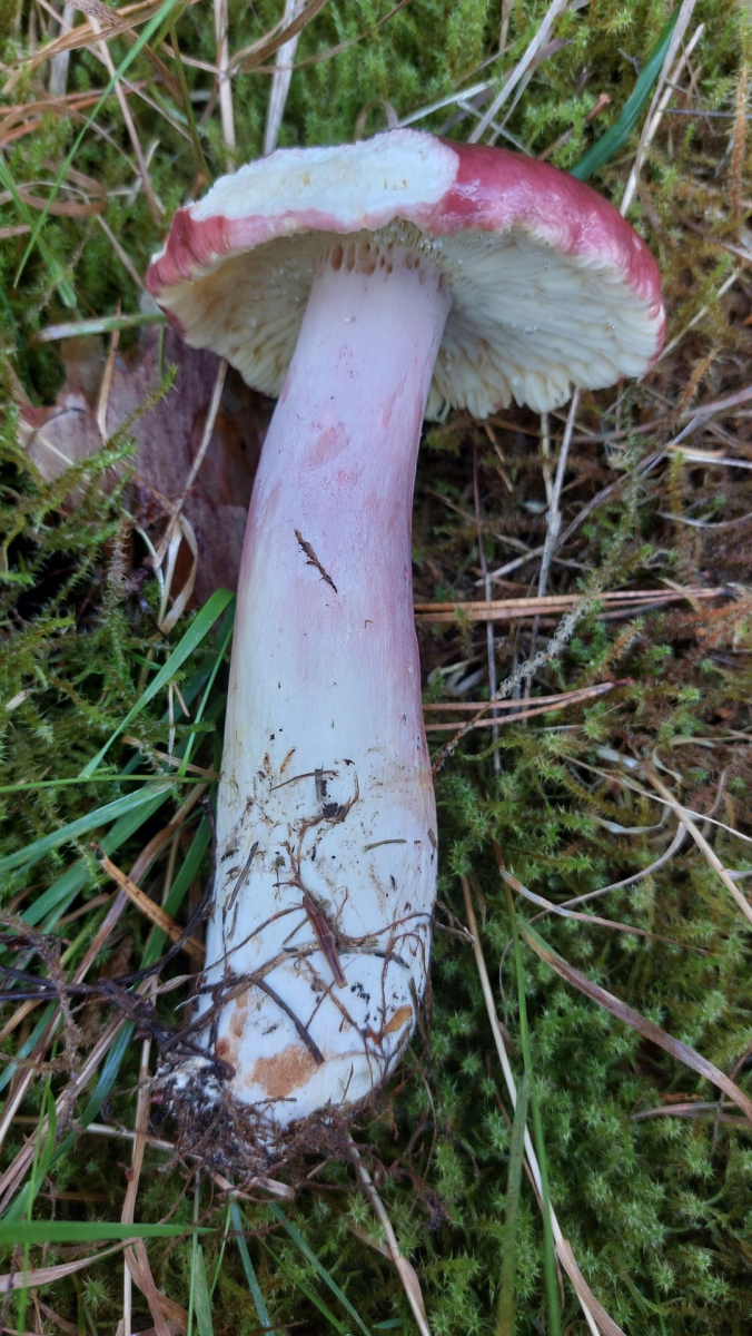 Prächtiger, sehr scharfschmeckender Täubling mit rotüberhauchtem Stiel