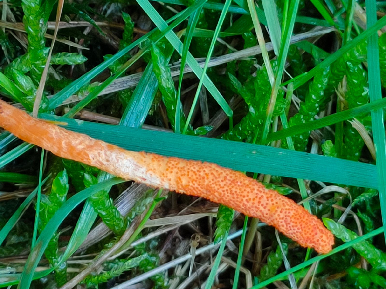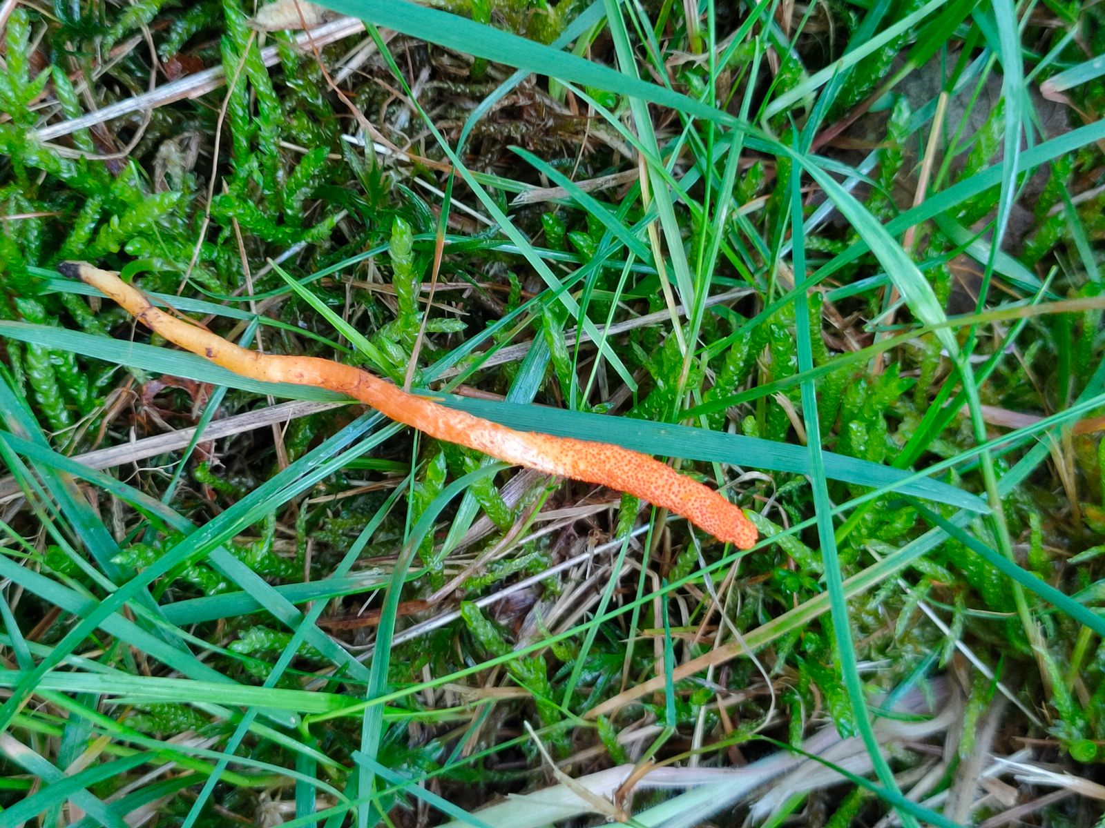 1. Den ersten Fund möchte ich die Puppen-Kernkeule - Cordyceps militaris nennen. Ich habe lange im Feld überlegt, ob dieser Stängel überhaupt ein
