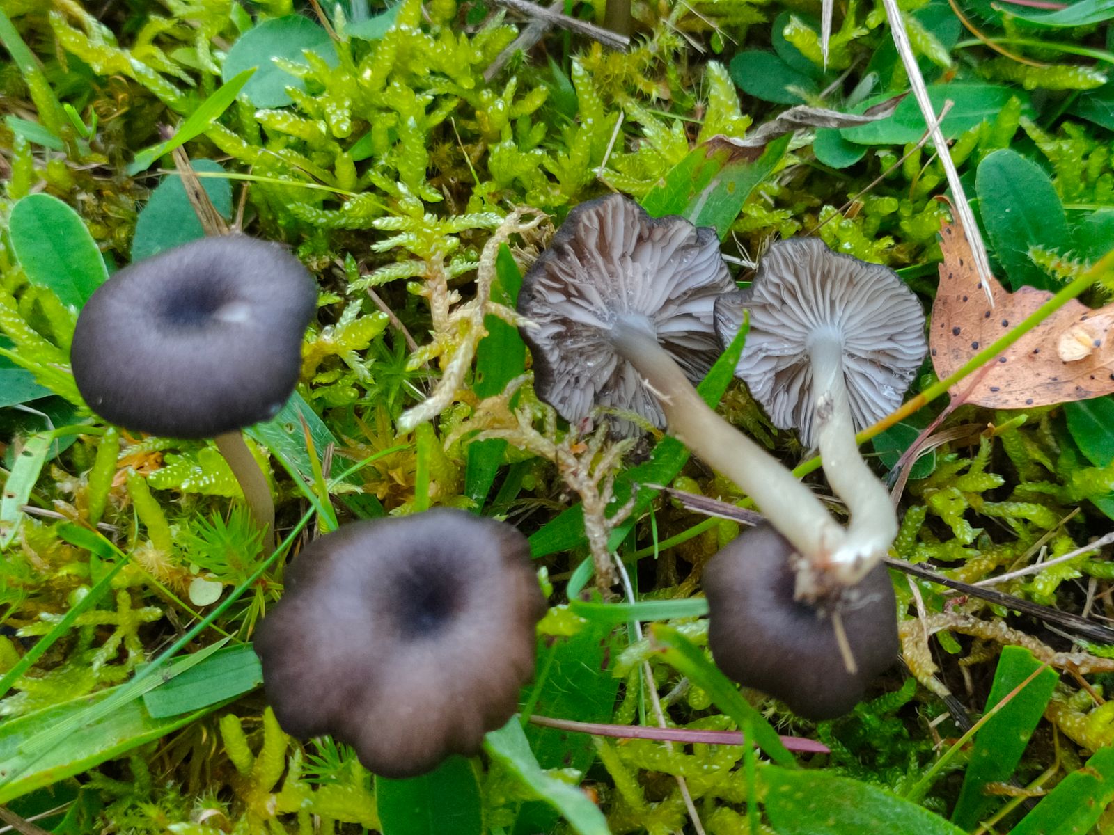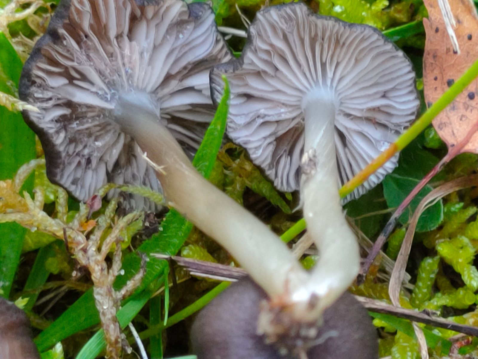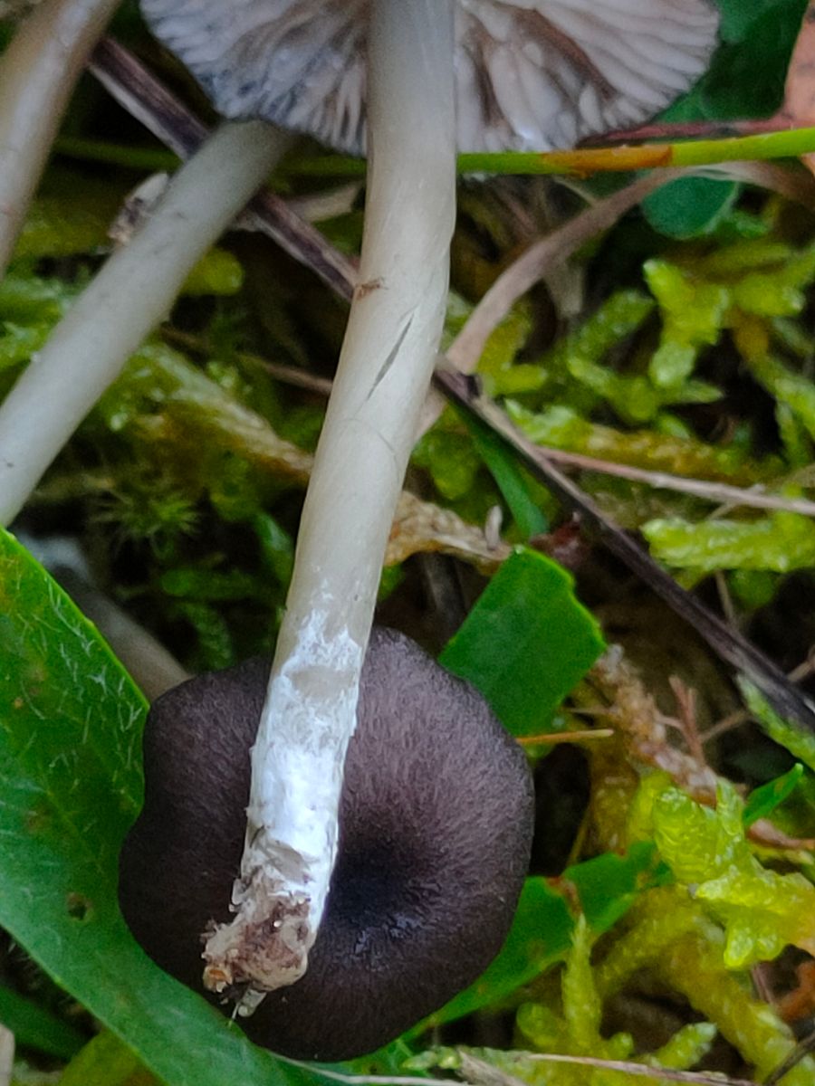 3. Die dunklen Entoloma haben folgende Eigenschaften: Der Hut ist schwarzblau, eine seidig radialrissige Oberfläche. Den Stiel würde ich als Hellbau beschreiben mit einer an der Stielbais vorhanden weißen Pilzigen struktur. Die Lamellen haben wellig, gesägte Schneiden die am Stiel angeheftet sind.
