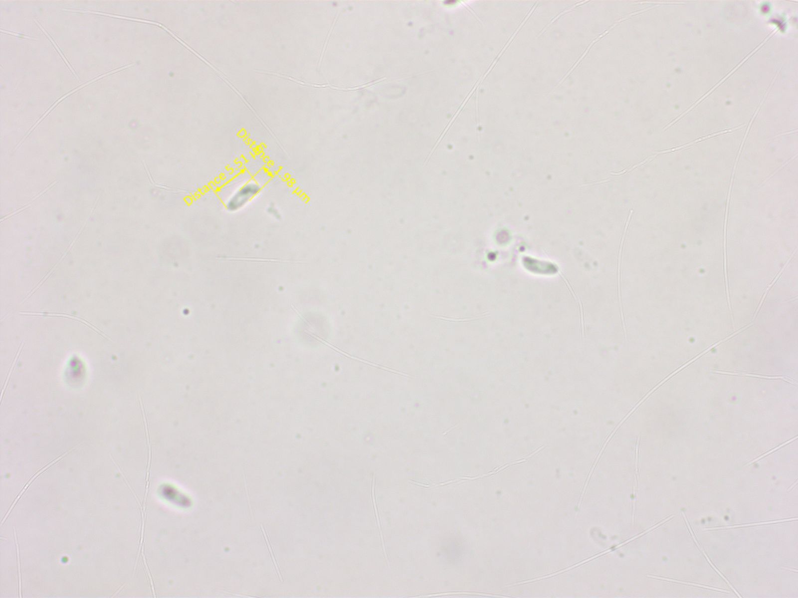 Und hier die ersehnte KOH-Reaktion (20%): Auf der Hutoberfläche fast negativ, Auf den Poren und am Stiel gelblich.