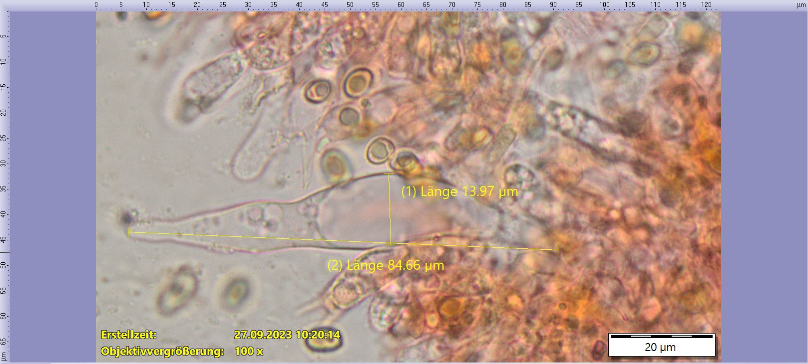 Im Prinzip hätte ich diesen Fund als Paxillus involutus s.str ablegen wollen, aber die Sporen sind zu klein und eher passend zu *P. rubicundulus aber so grosse FK kann fast nicht sein. Die Suche ging somit weiter…..