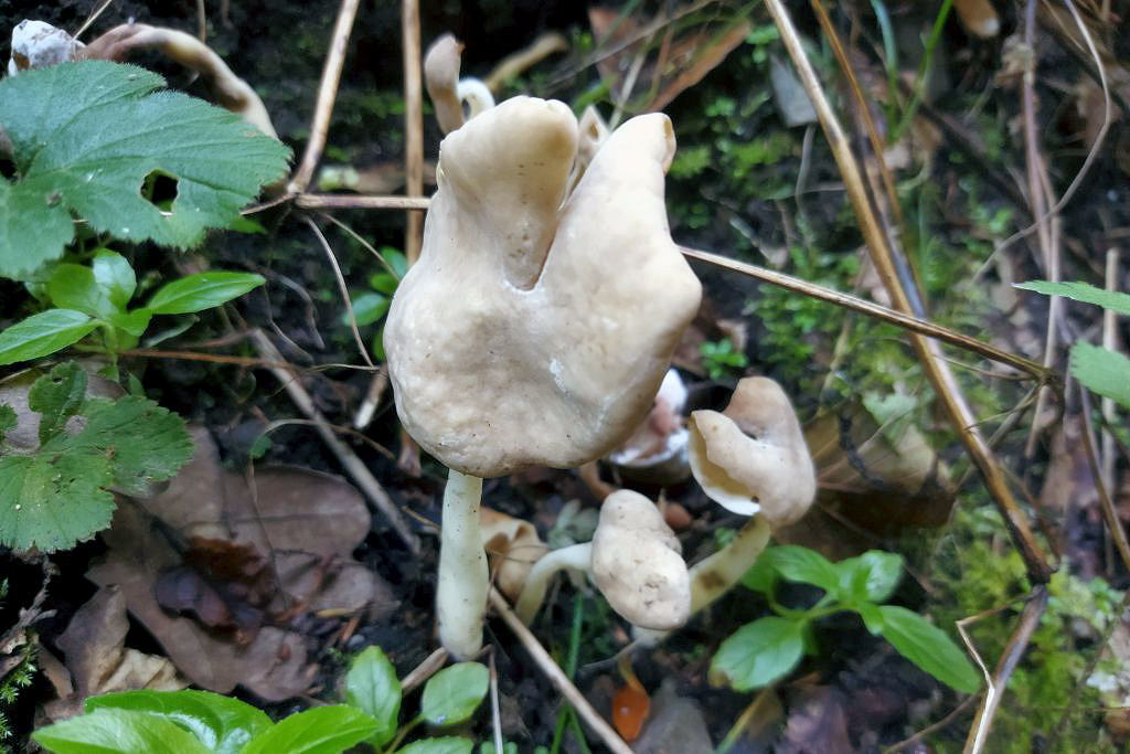Zum einen diese Prachtburschen, die ich dann doch nach Optik und breiten Sporenmaßen als Helvella elastica bezeichne: