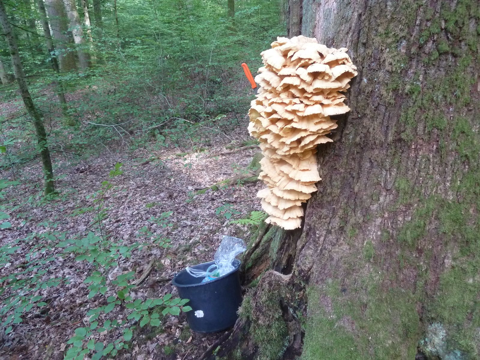 Was soll der Eimer? und das Messer? Der Fruchtkörper ist doch nicht mehr essbar.