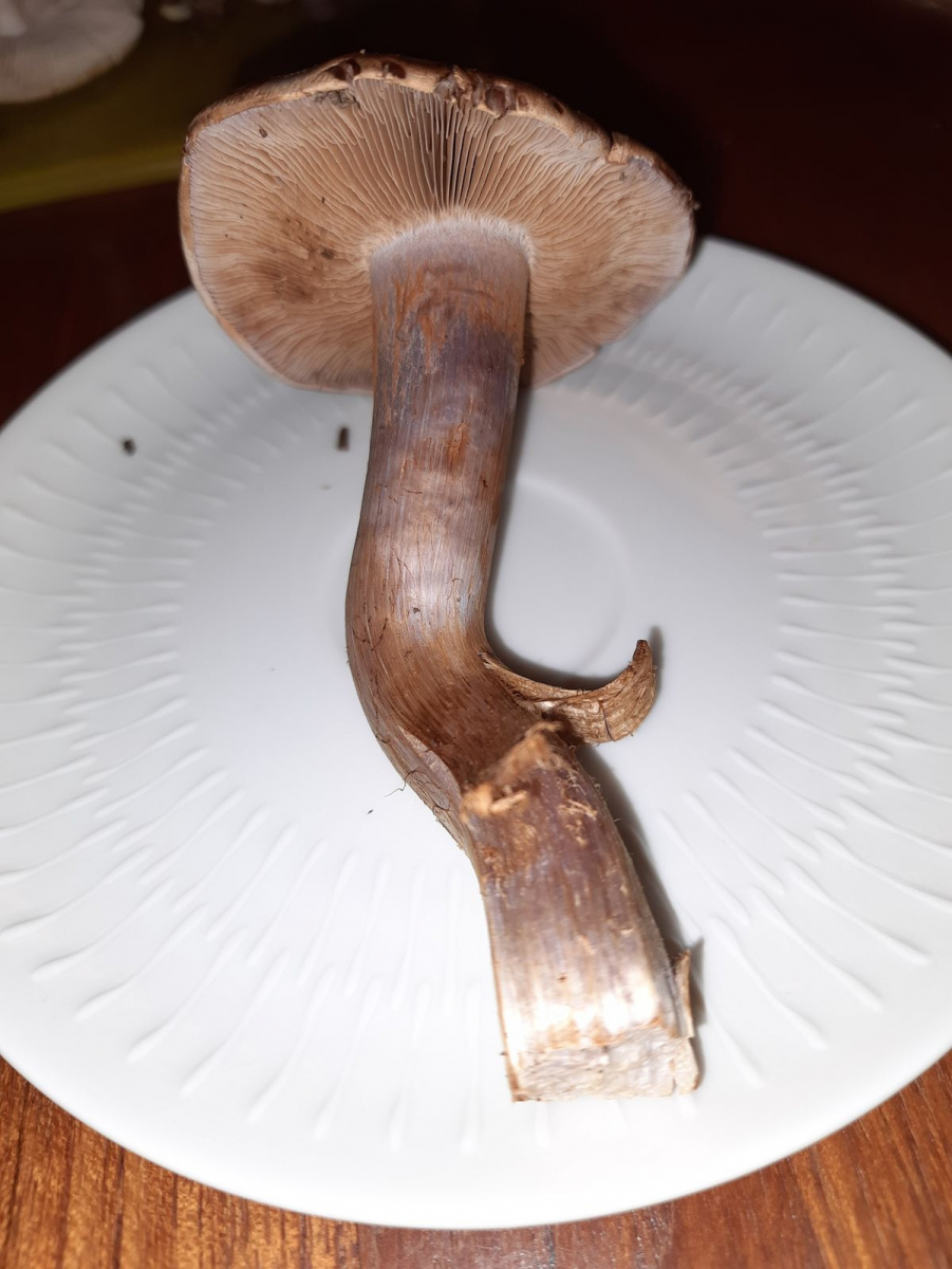 Ich war gestern in unseren heimischen Wäldern im Schwarzwald unterwegs. Vieles glaubte ich bestimmen zu können aber bei diesem Exemplar hatte ich keine Ahnung. Ich weiß nur, dass dieser Pilz eher Einzelgänger ist und ich ihn unter Fichten gefunden habe. Der Geruch war ziemlich unbedeutend, Geschmacksprobe habe ich natürlich keine gemacht. Fotografiert habe ich abends, Farben können deshalb falsch sein. Aber man sieht denke ich deutlich, dass Stiel und Hut schimmern (kleine Schüppchen der Oberfläche?) Danke für jeden Ratschlag.....