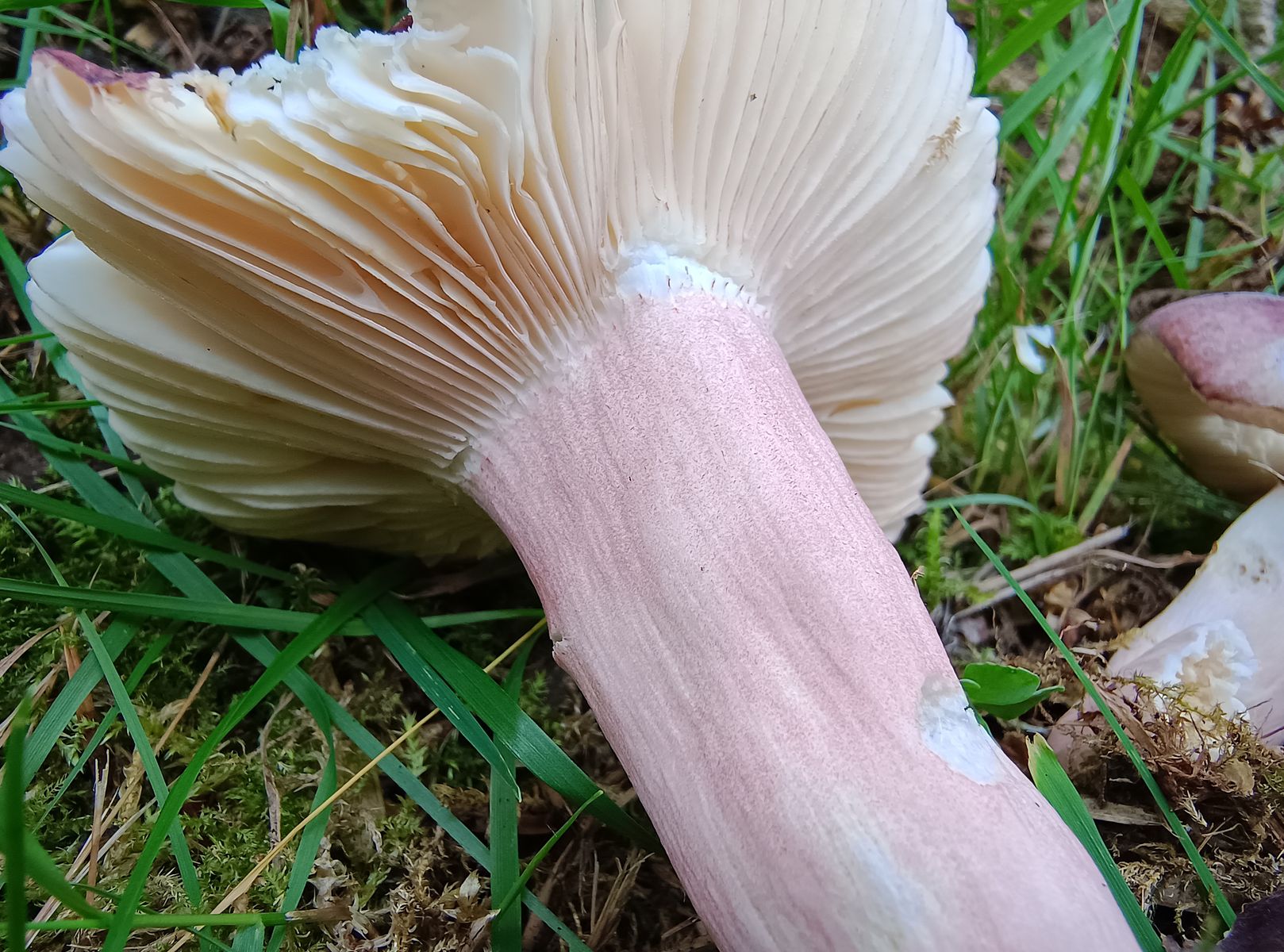 - Huthaut feldrig aufgerissen, Konsistenz erinnerte mich stark an den Pfirsich-Täubling; Finger fühlten sich danach auch so wachsartig an; gut bis zur Hälfte abziehbar