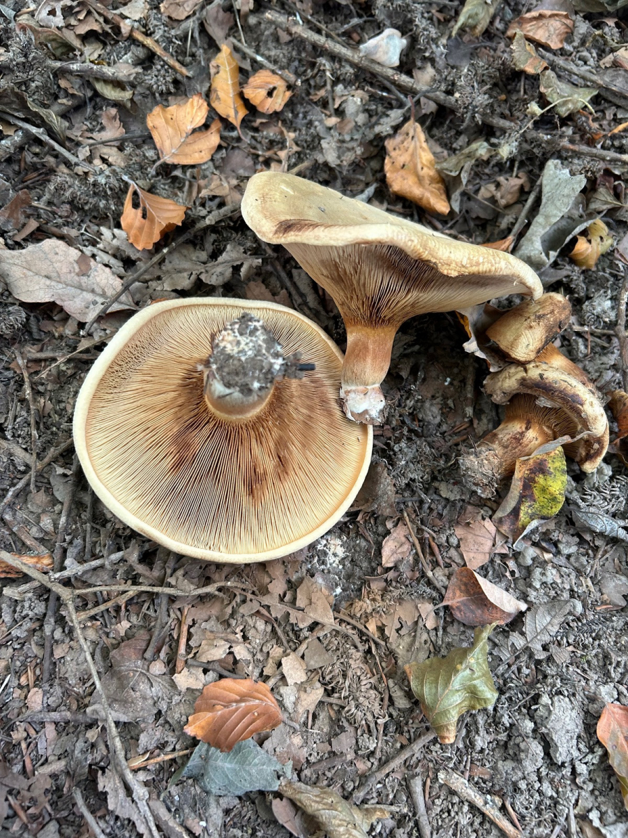 Diese Kremplinge / Paxillaceae - bin mir nicht sicher ob diese sogar Riesenkremplinge und nicht die häufig anzutreffenden kahlen Kremplinge sein könnten - wachsen jedes Jahr an dieser Stelle und haben einen enormen Durchmesser: