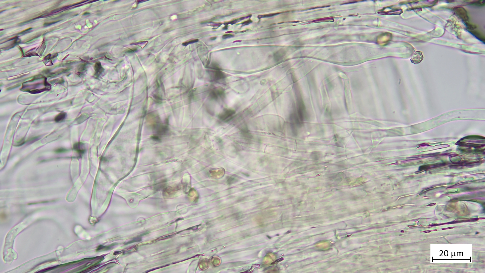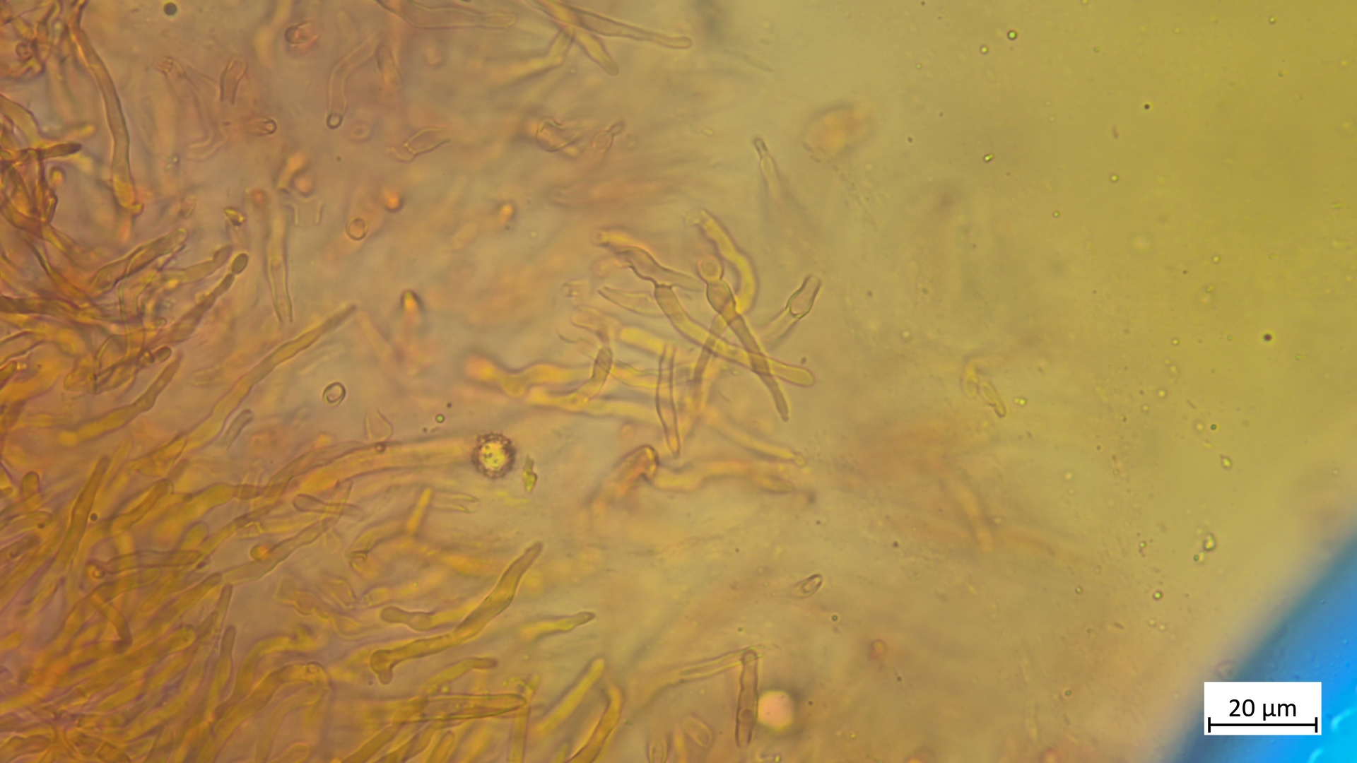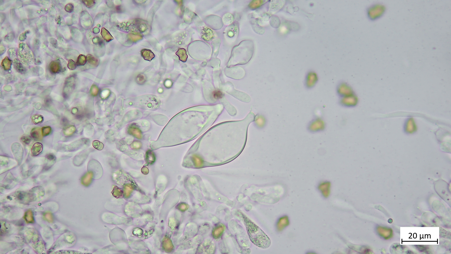 Kaulozystiden oft eher schlank-zylindrisch, lang. Ebenfalls mit Kristallschopf anzutreffen