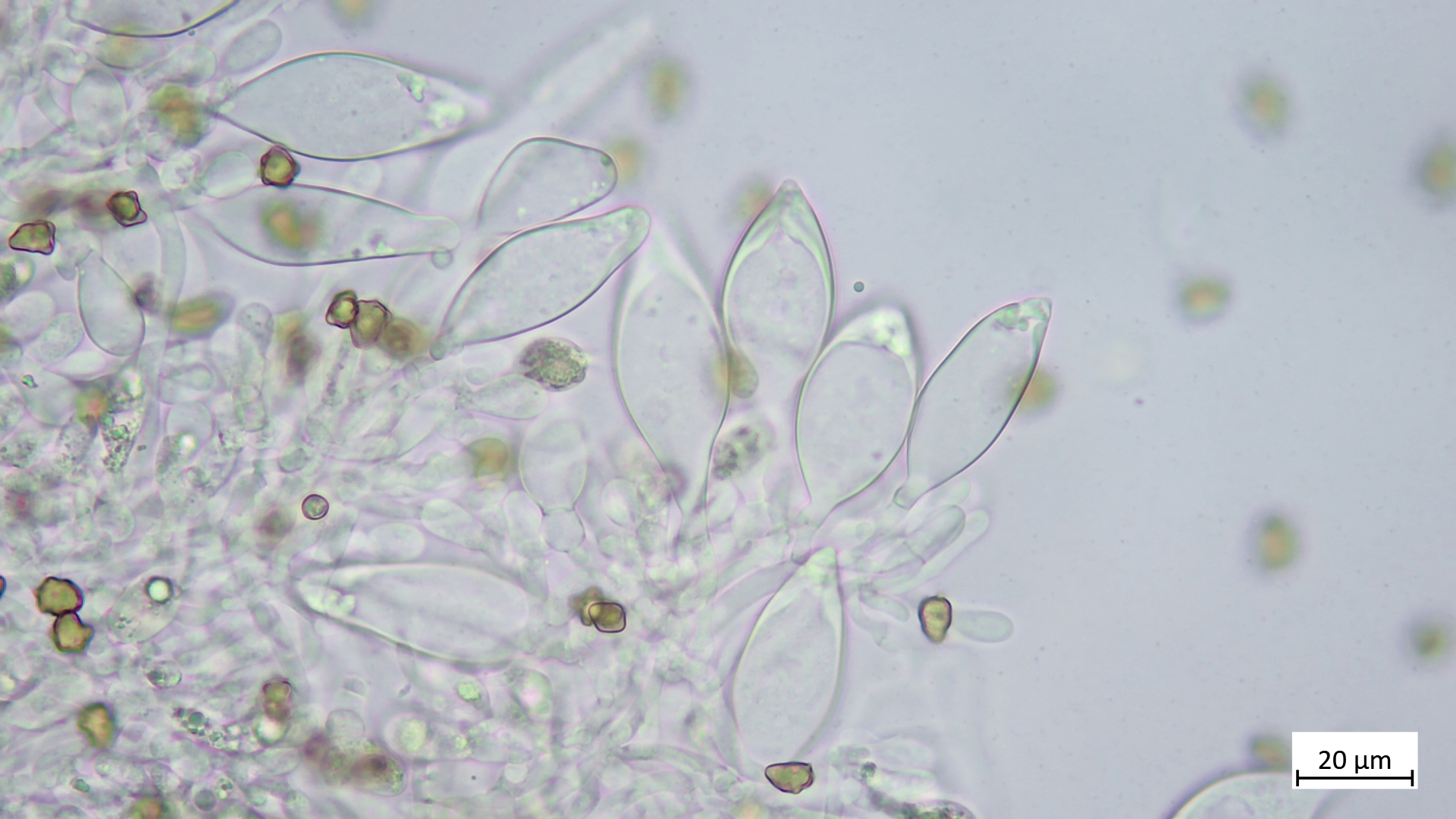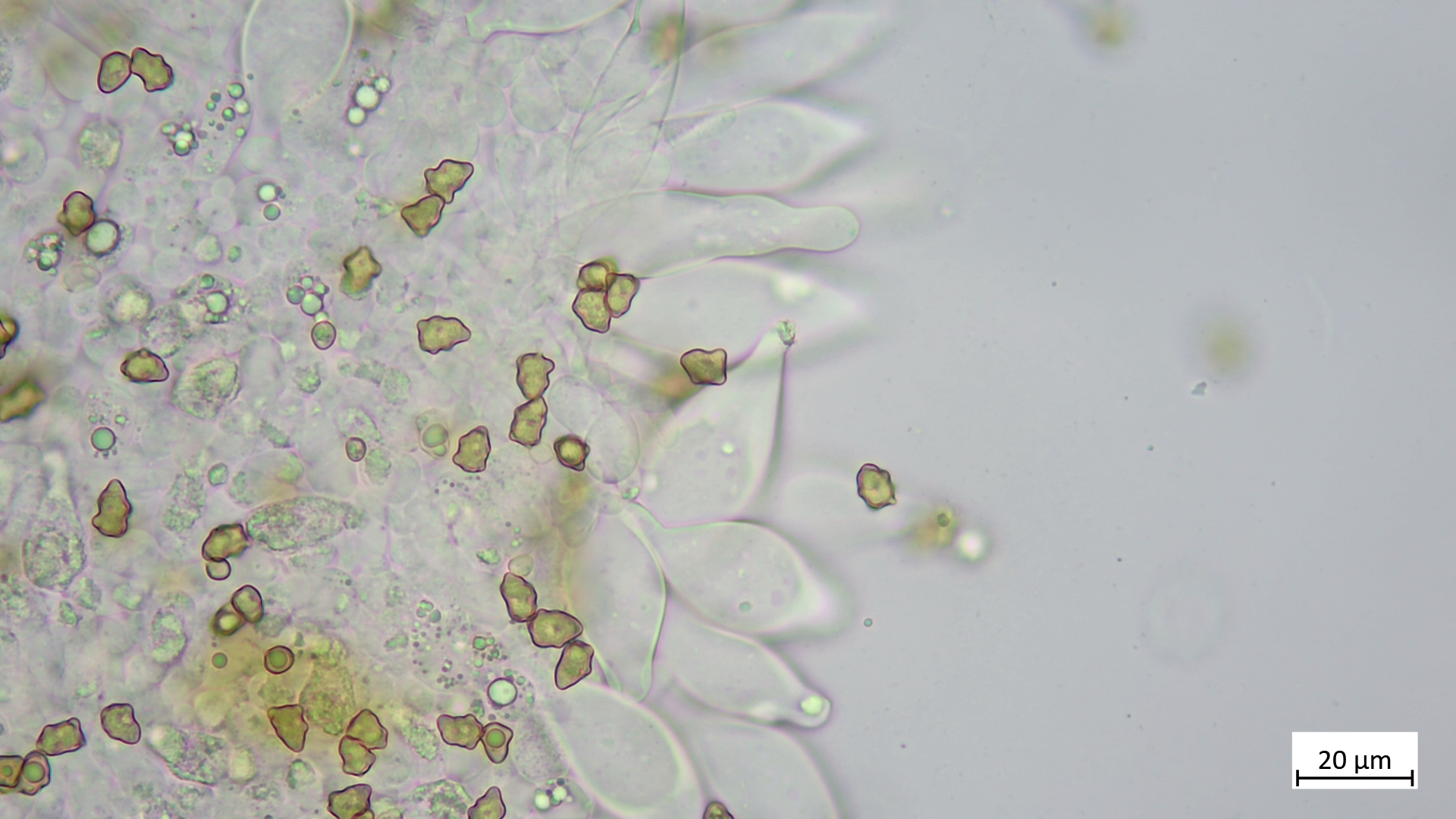 Sporen länglich und biseriat im Asci angeordnet, Apikalapparat in baralscher Lösung nur schwach darstellbar (allerdings auch nur quick and dirty)