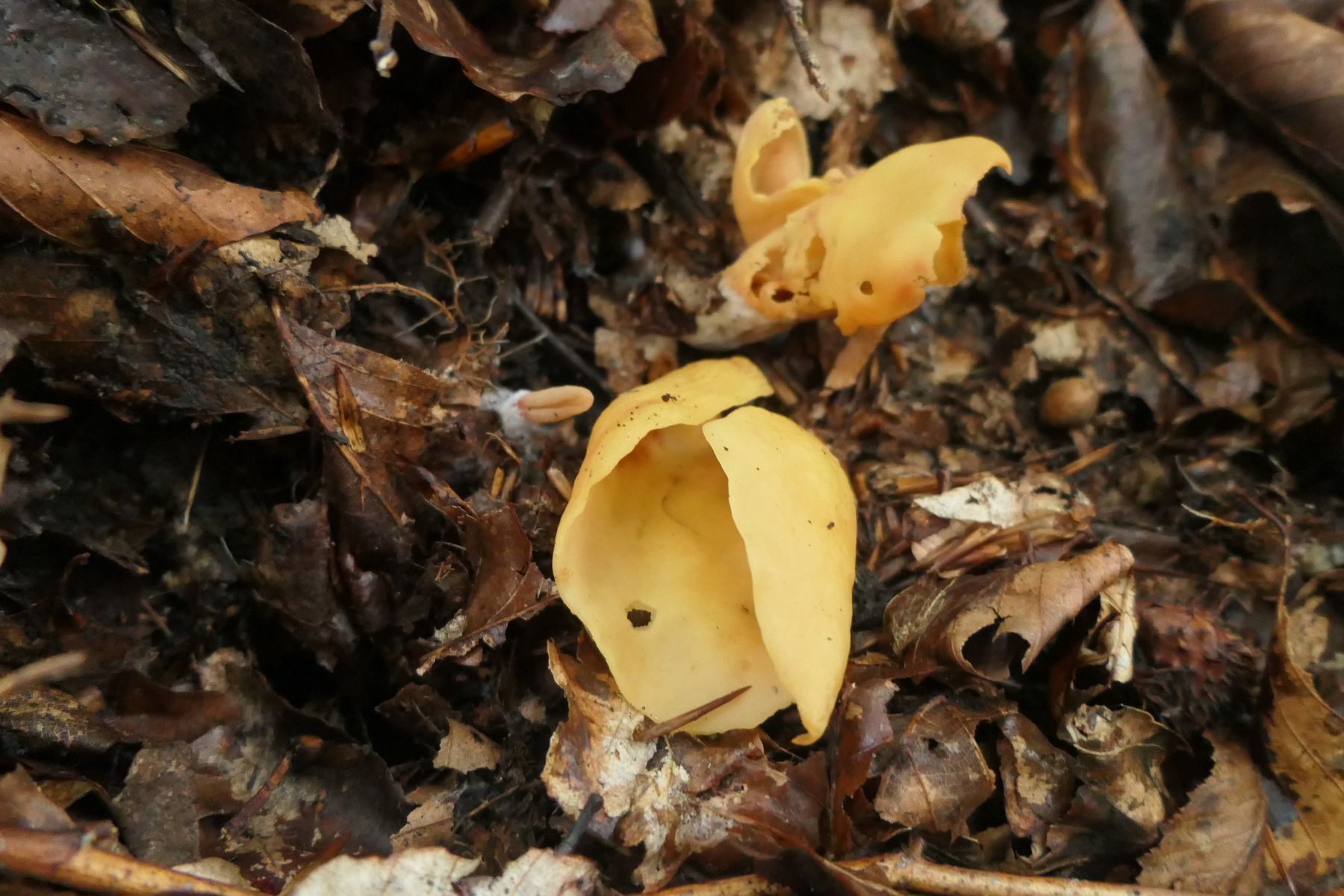 02 Hymenoscyphus fructigenus - das Fruchtschalenbecherchen (durchgehend auf alten Eichelschalen)