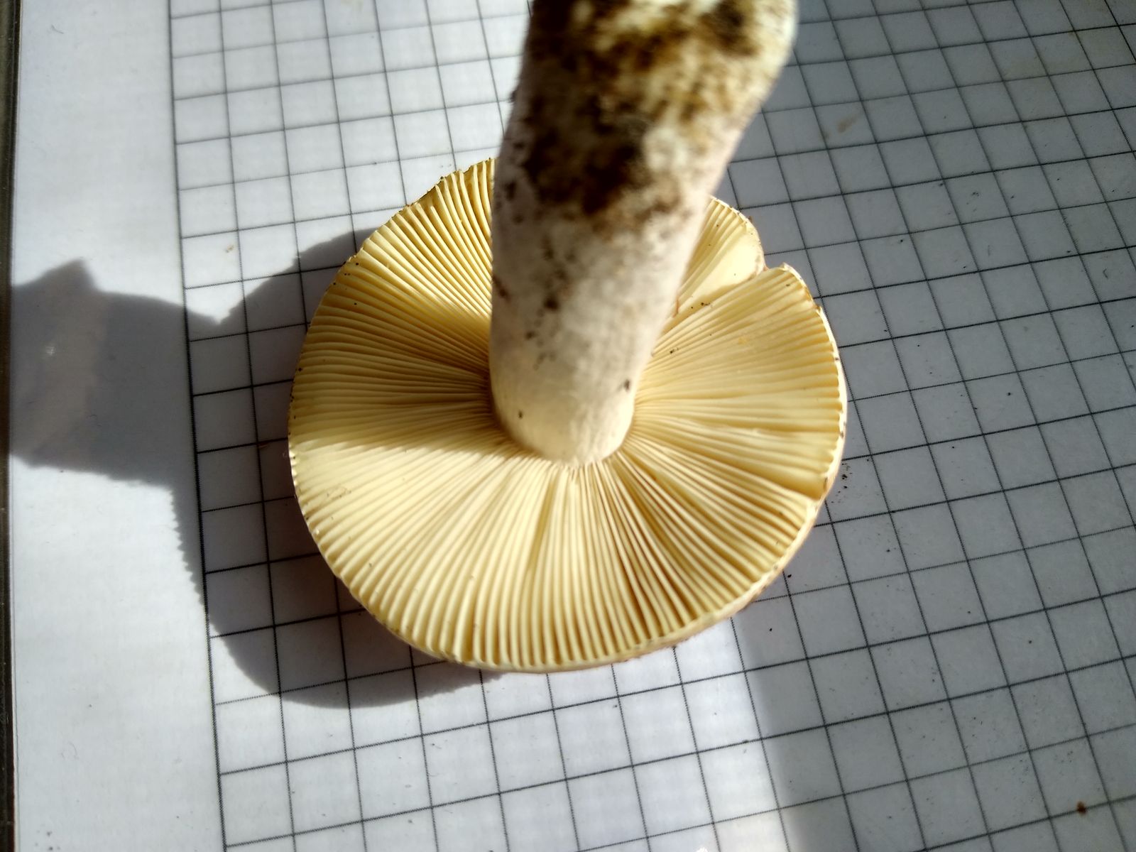 Bild B7 Sporenpulver von Pilz 2 (ev. R. velutipes) auf Pilzrad aus FoTE