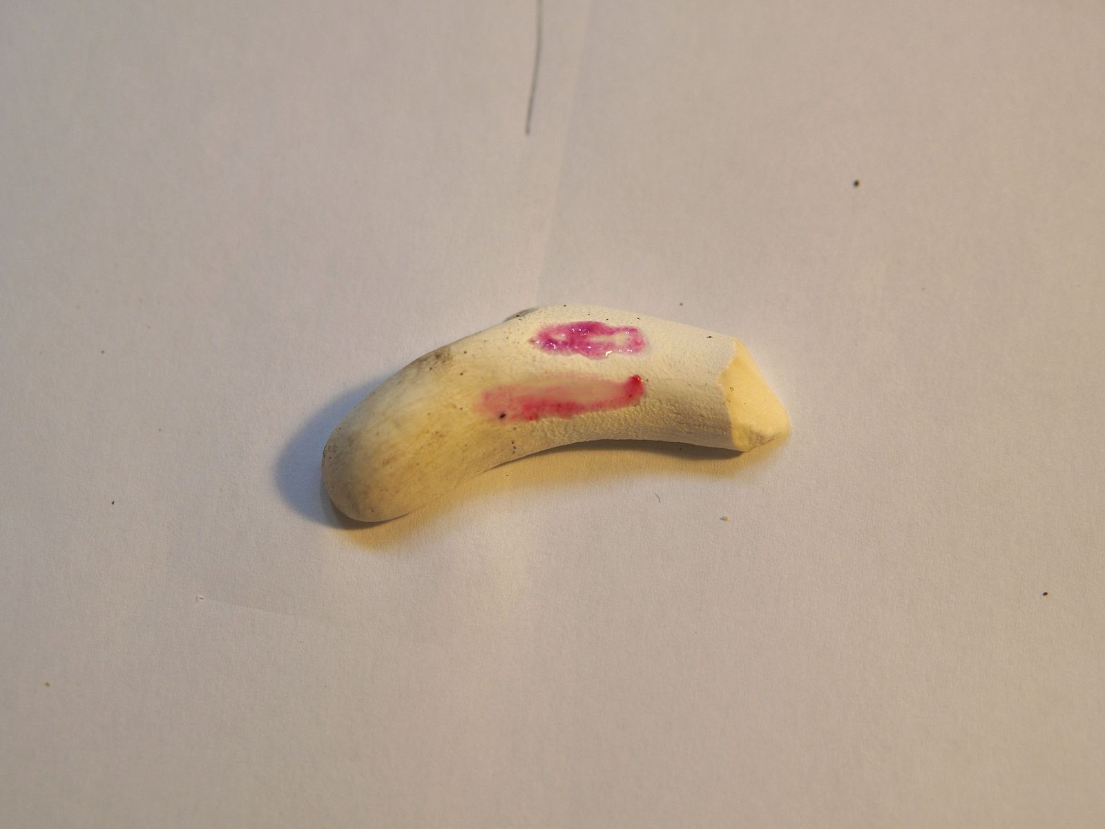 Flache Fraßstellen am Hut sind violett gefärbt.