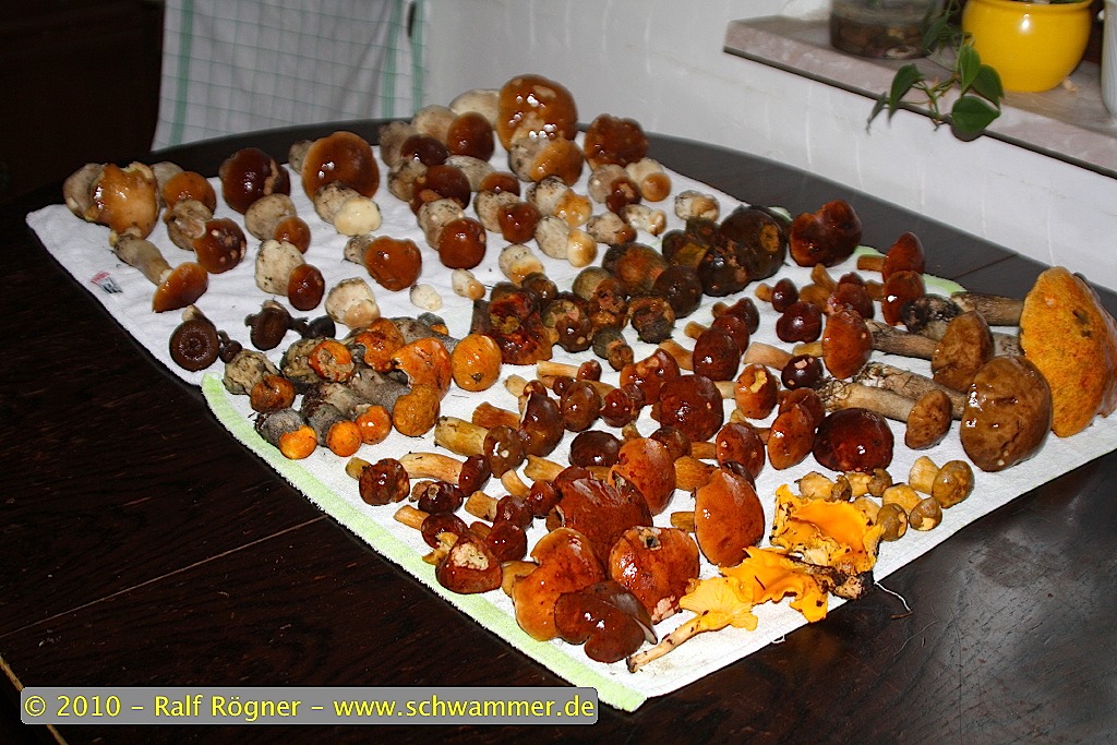 Schon auf den ersten Metern der erste Steinpilz, Rotfußröhrlinge in einer Vielzahl, dass es nur noch "erschreckend" ist, Maronenröhrlinge bis zum Abwinken (ich nehme schon nur noch die Exemplare 3-7 cm mit), Raufußröhrlinge (Rotkappen) und die ersten Mohrenkopfmilchlinge des Jahres.