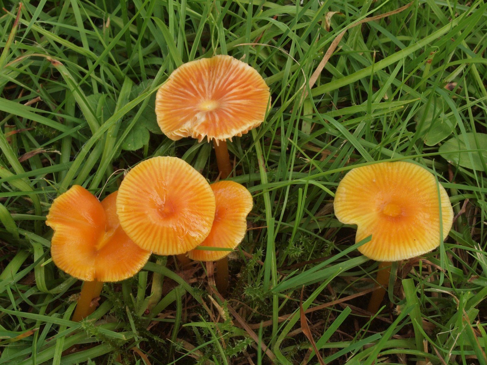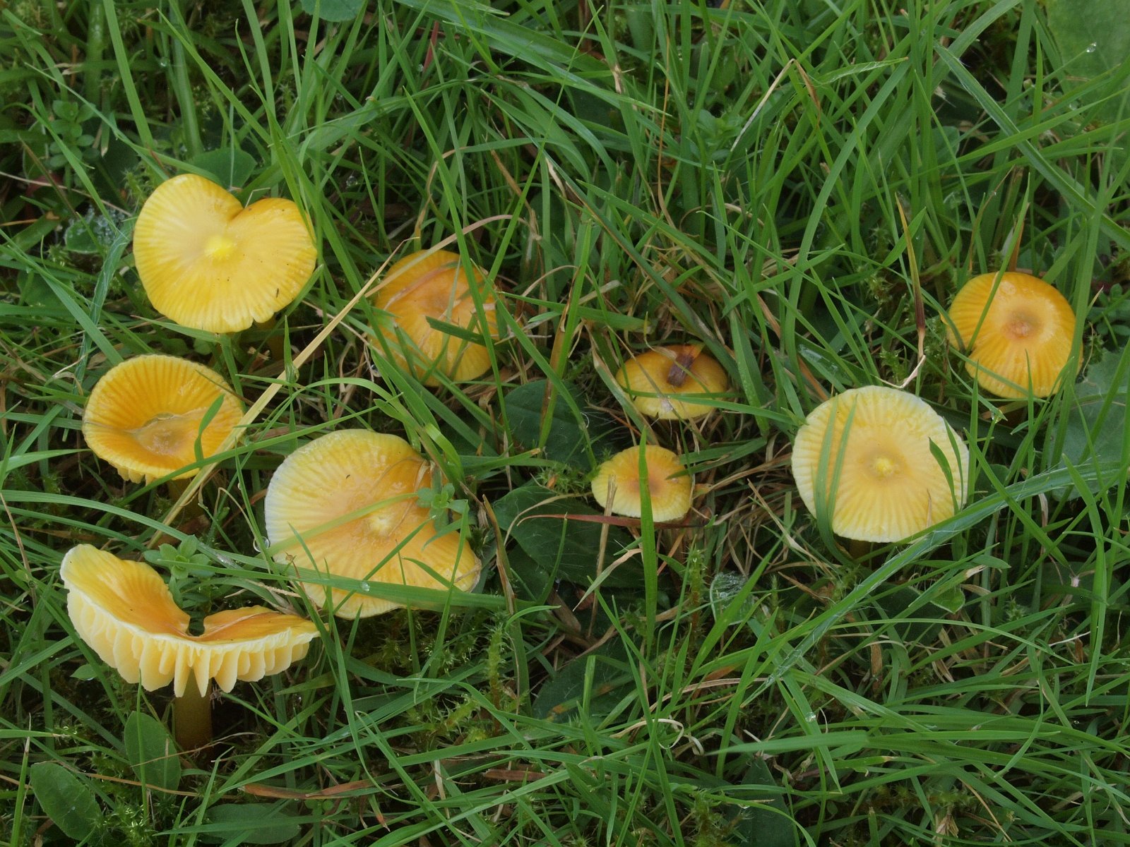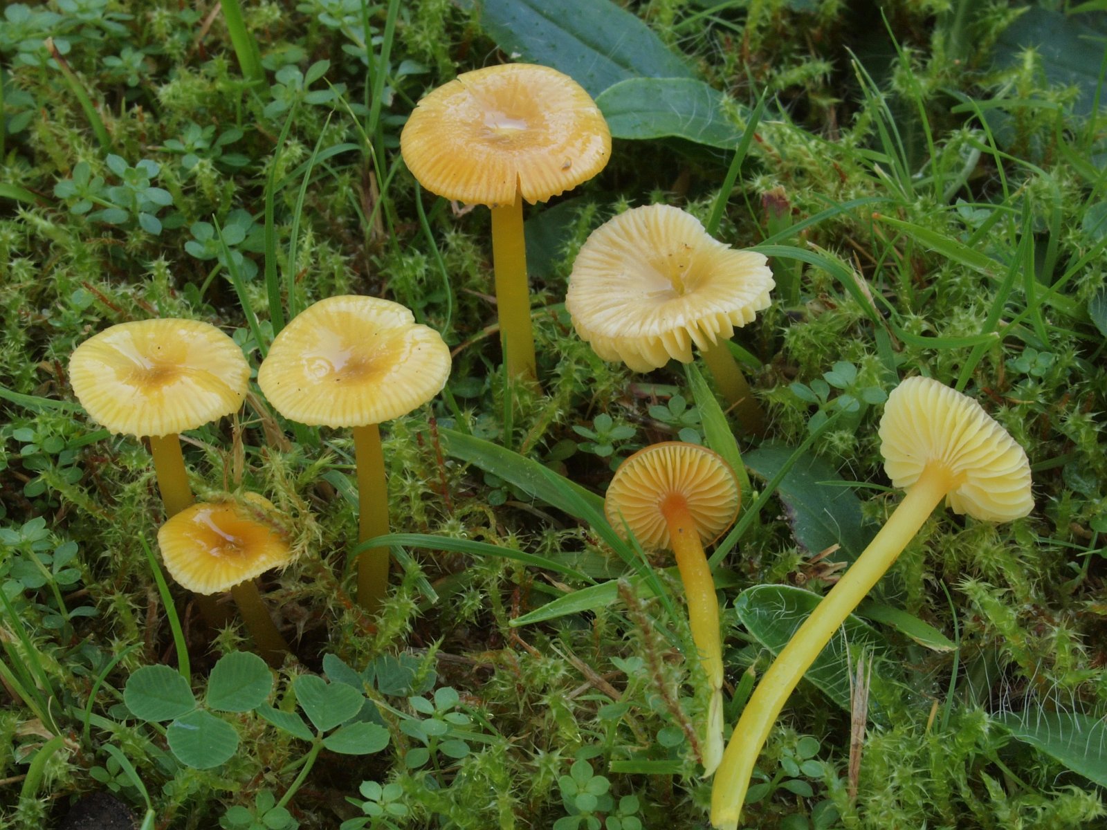 Hygrocybe helobia (Gelbblättriger Filzsaftling auch Knoblauchsaftling oder Sumpfsaftling)