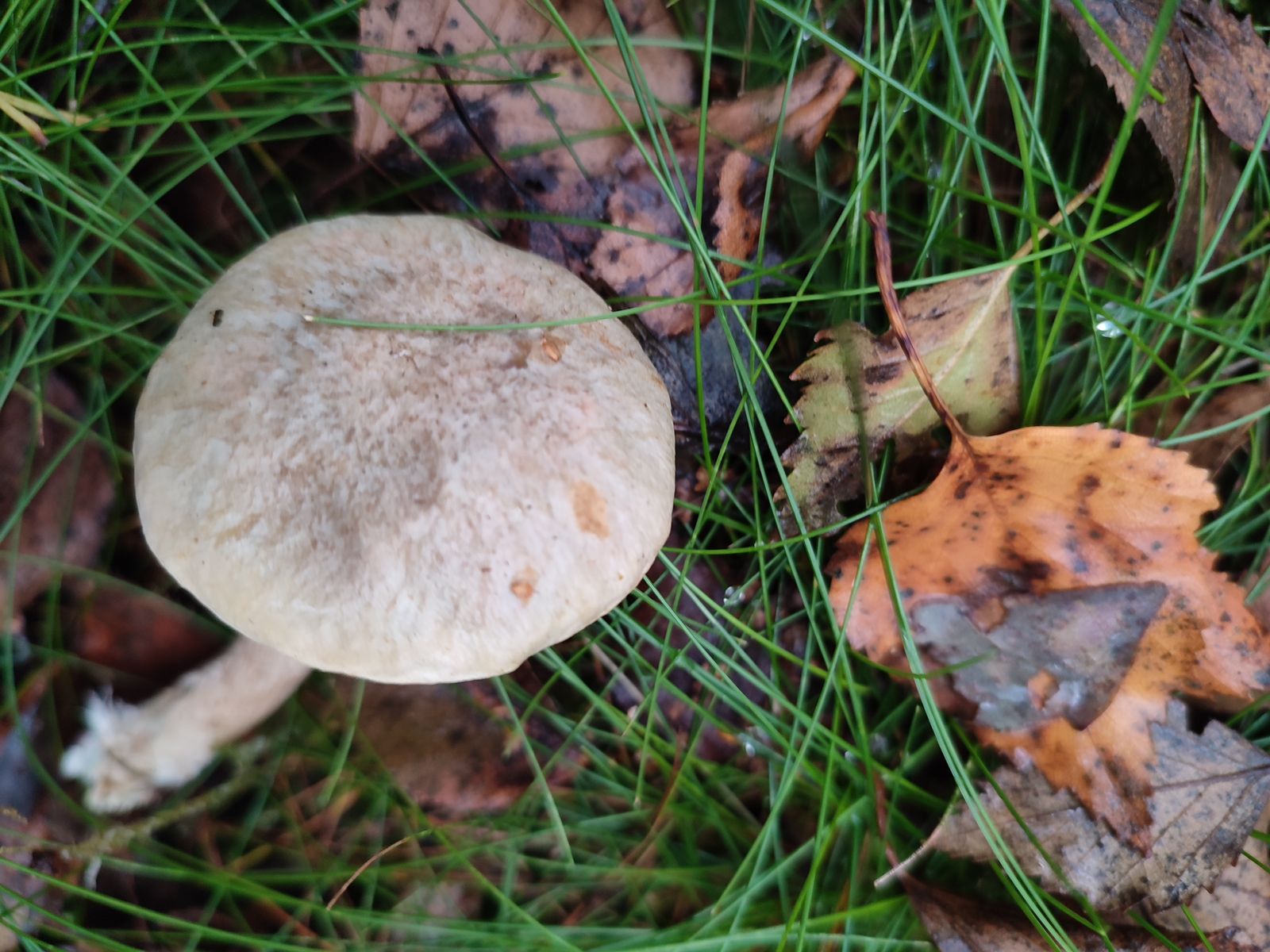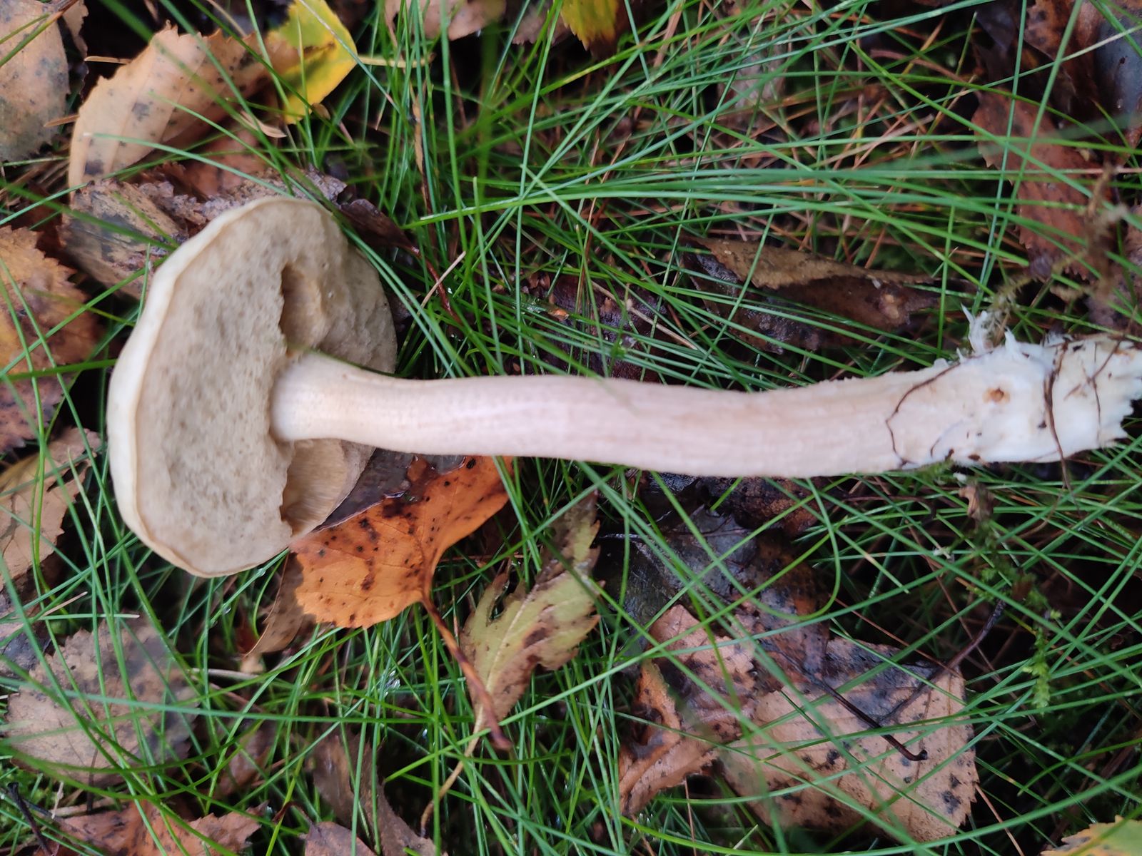 Wieder etwas weiter fand ich folgenden Röhrling, welcher an der Stelle mit den ganzen Birkenpilzen wuchs, allerdigns kleiner war und auch schon überständig. Er war viel heller als die anderen Birkenpilze und kleiner. Eine andere Art?