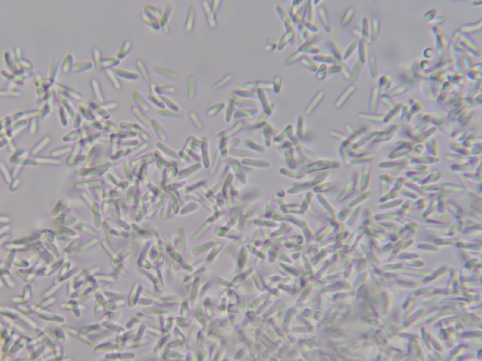 In verdünnter KOH hingegen löst sich die Konidienmasse schnell in Einzelzellen auf, die davonschwimmen: