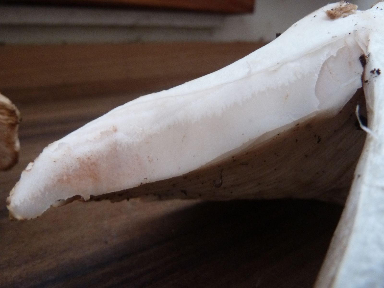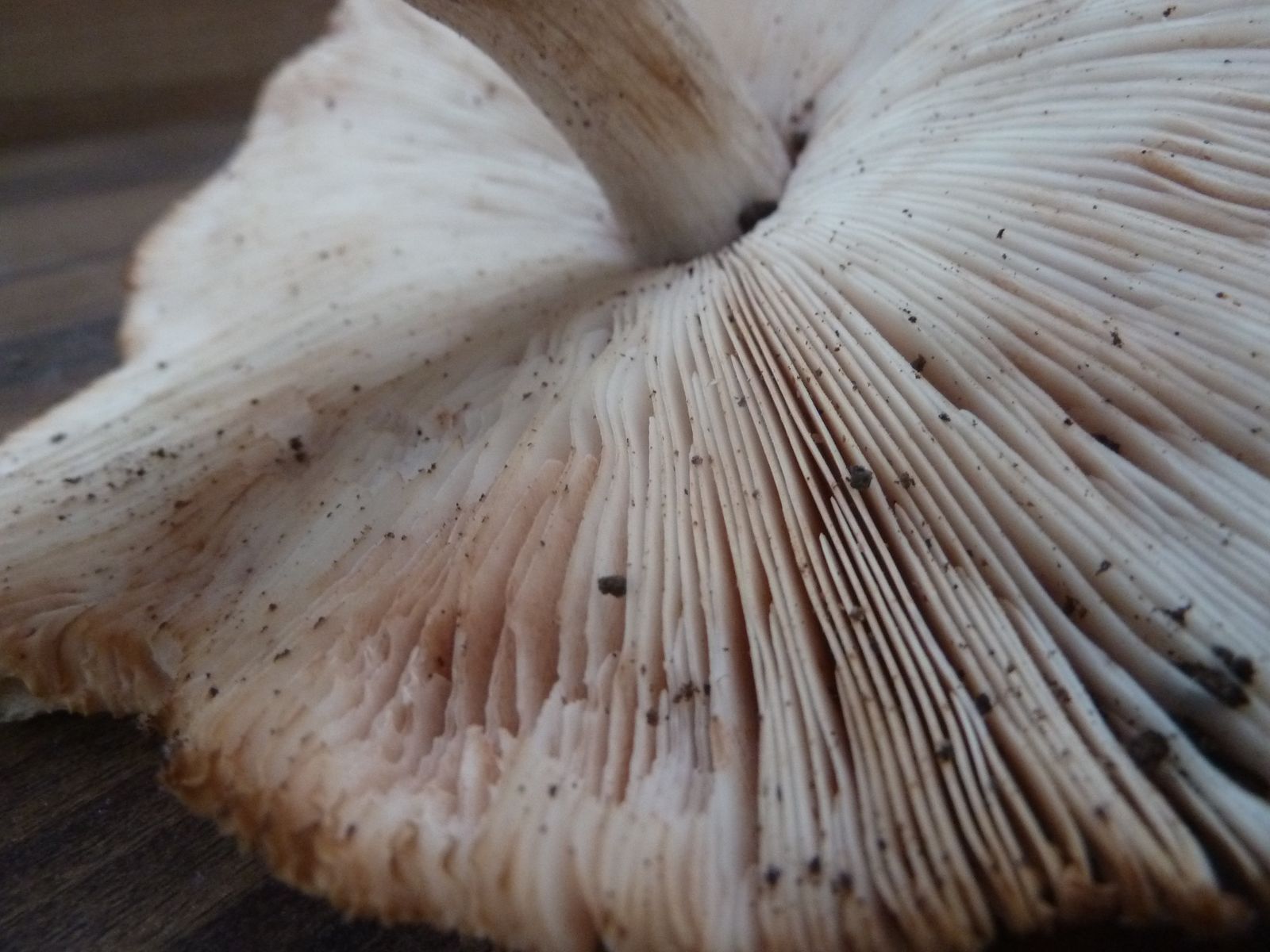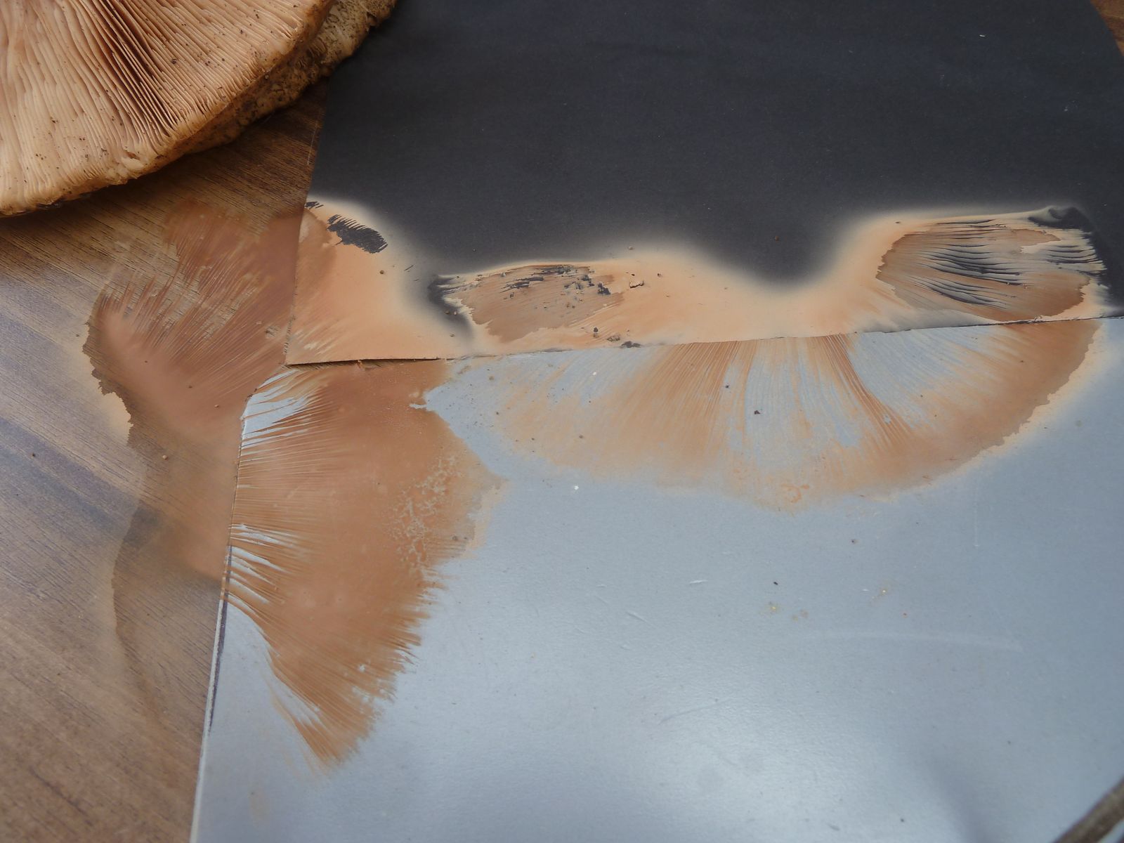 • Hallo Frank, die ersten waren halt schon älter. Da sehen die Lamellen schon aus wie das Sporenpulver, weil die Sporen schon reif sind.