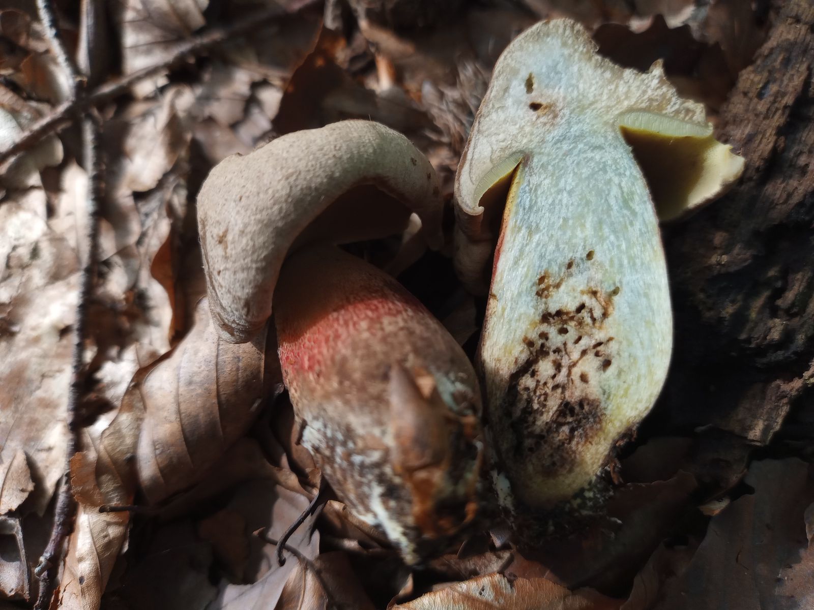Der Schönfußröhrling (Caloboletus calopus) der in einigen Gegenden ein Massenpilz sein muss, findet sich hier in der Köln-Bonner Rheinebene nur selten. Heute aber: