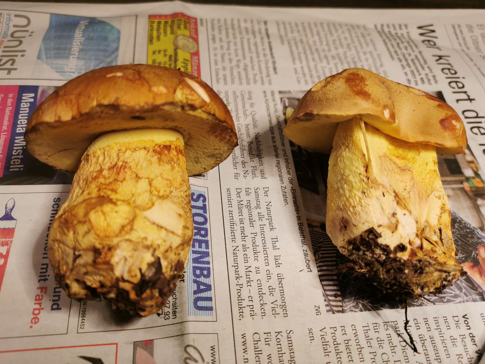 gegen den Ersten spricht das weiße Fleisch und beim zweiten das Stielnetz,