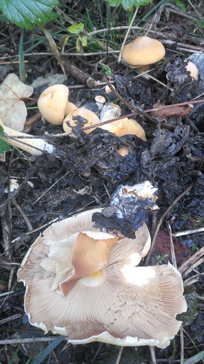 Die Ansammlung von ca. 20 Goldfarbenen Glimmerschüpplingen Phaeolepiota aurea am krautigen Weg-/Waldrand mit Brennnesseln war prächtig anzusehen. Die Farbe war deutlich stärker orange als auf den Fotos. Ein eindrücklicher Erstfund für mich:-) Nur allzu gern würde ich diesen ehemaligen guten Speisepilz kosten, aber das Risiko ist mir zu gross...