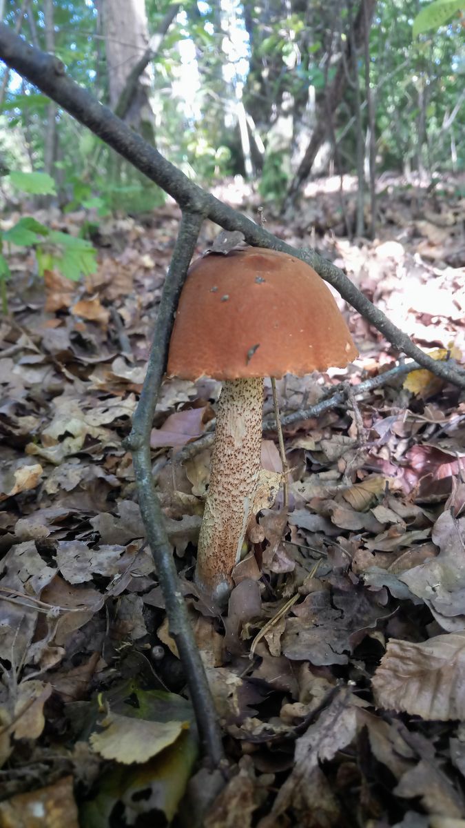 Bei den Stieleichen in der Aue wuchs auch diese im Wachstum etwas behinderte Laubwald-Rotkappe Leccinum aurantiacum.