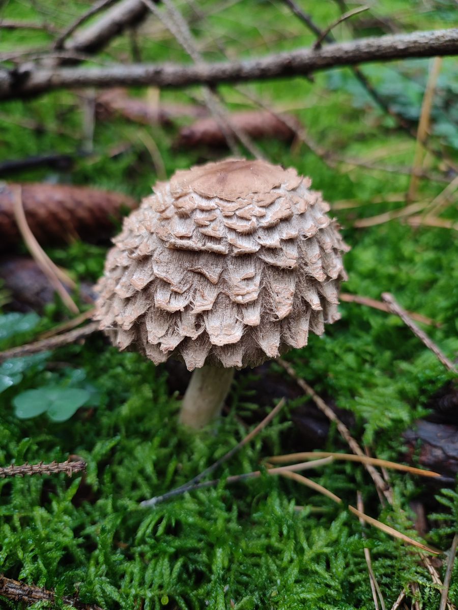 • Safranschirmling sehe ich da eher nicht, der war zu klein dafür mmn. Auch sehen die "Schuppen" eher faserig aus, das passt mmn. nicht zum Safranschirmling. Wird aber jetzt natürlich auch schon wieder eher Rätselraten wegen fehlenden Detailfotos.