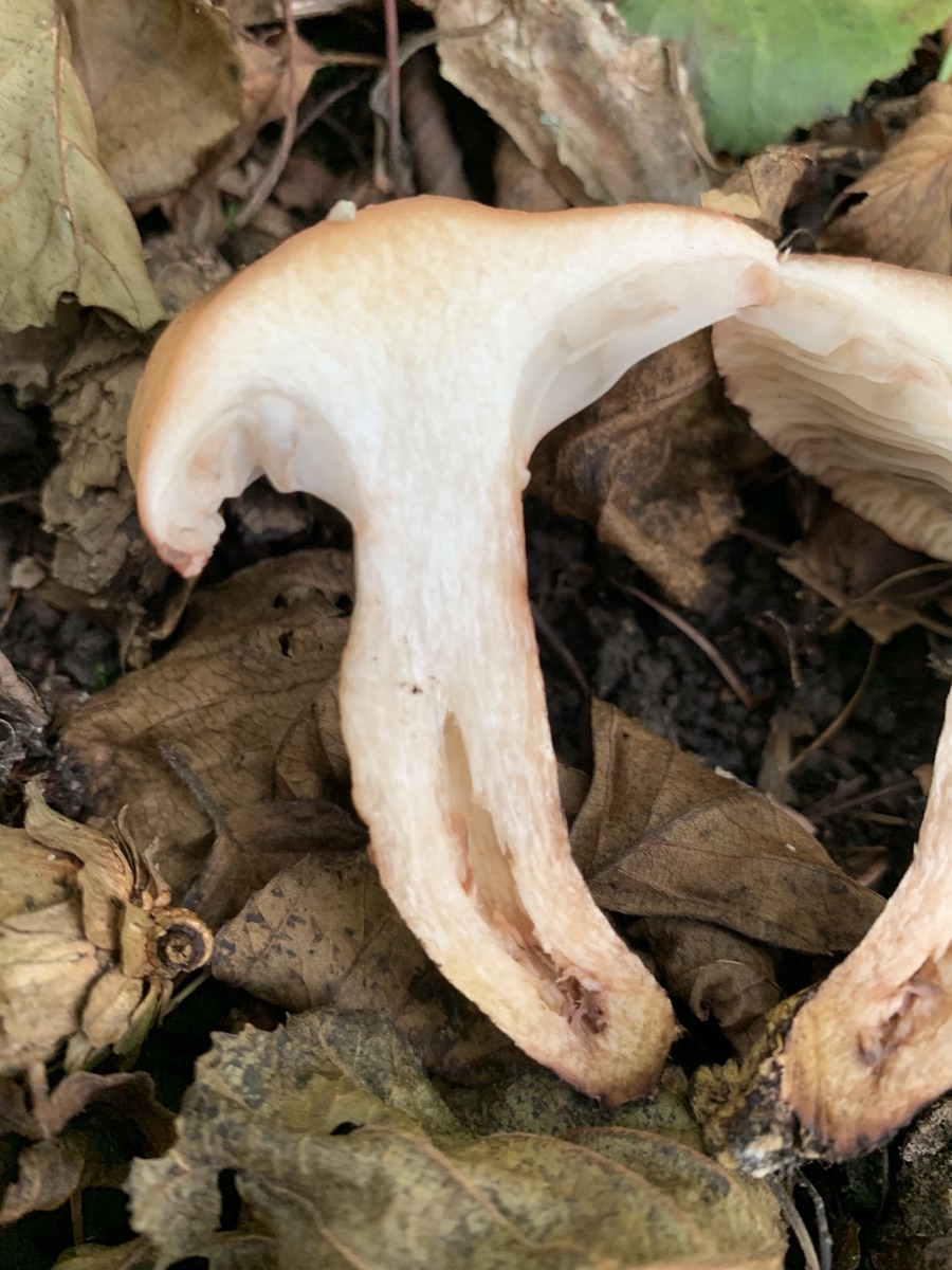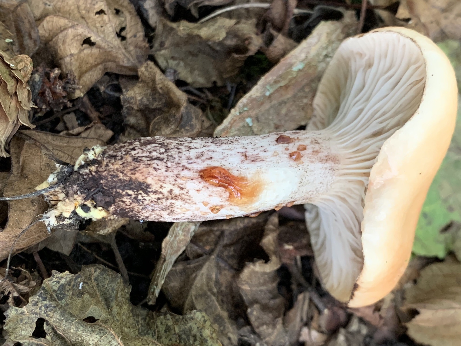 Folgenden Pilz habe ich in einer Weichholzaue bei Westerburg gefunden. Auffällig sind die roten Guttationstropfen und ein Geruch der dem Maipilzgeruch sehr ähnlich ist.