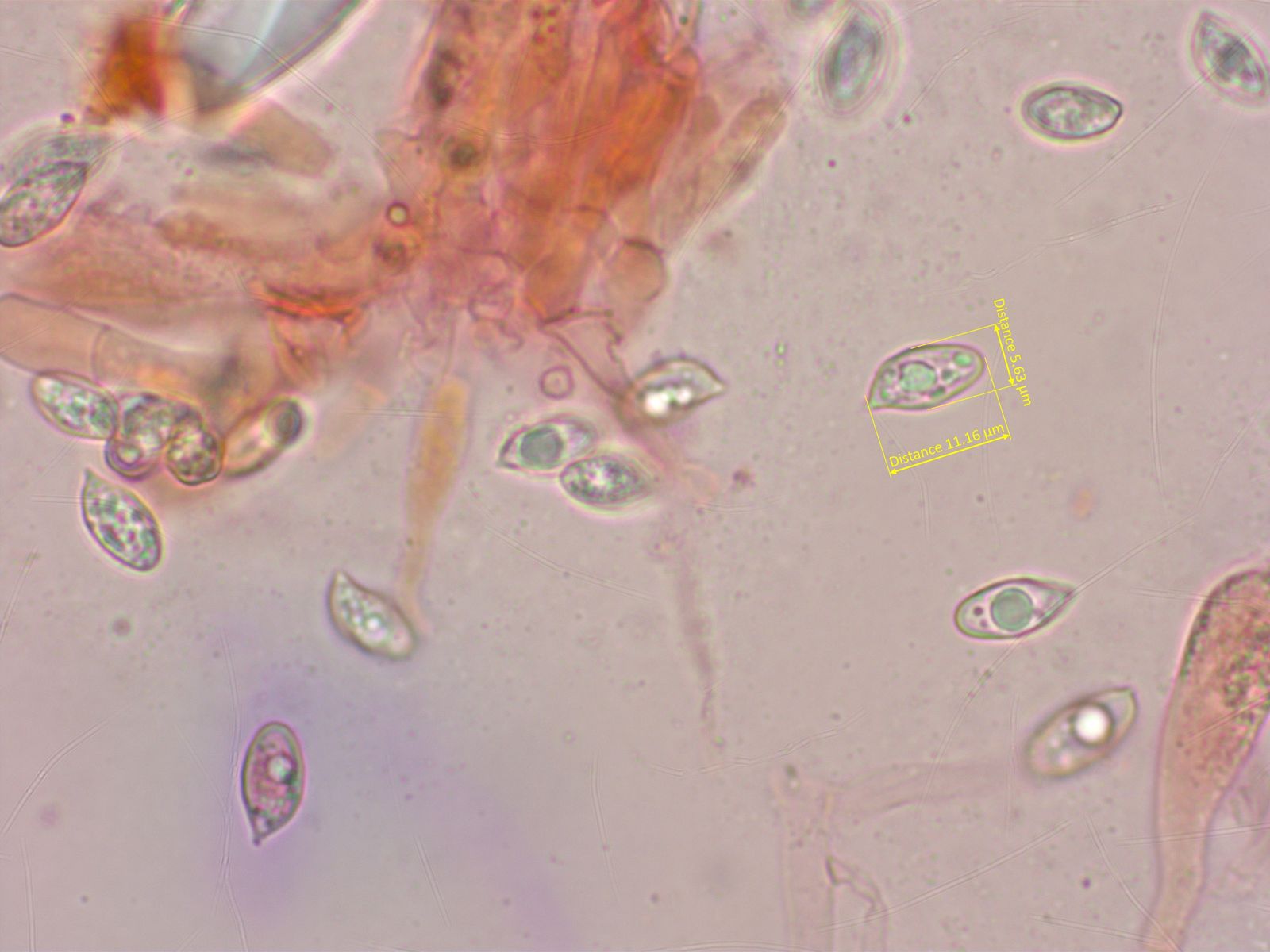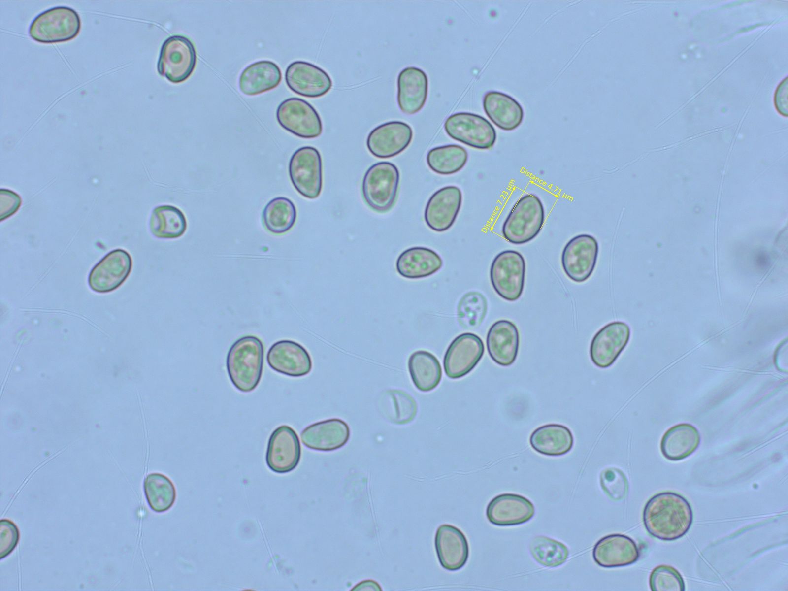 Die Sporen sind winzig, maximal 5 µm lang. Leider gab es keinen brauchbaren Sporenabwurf.