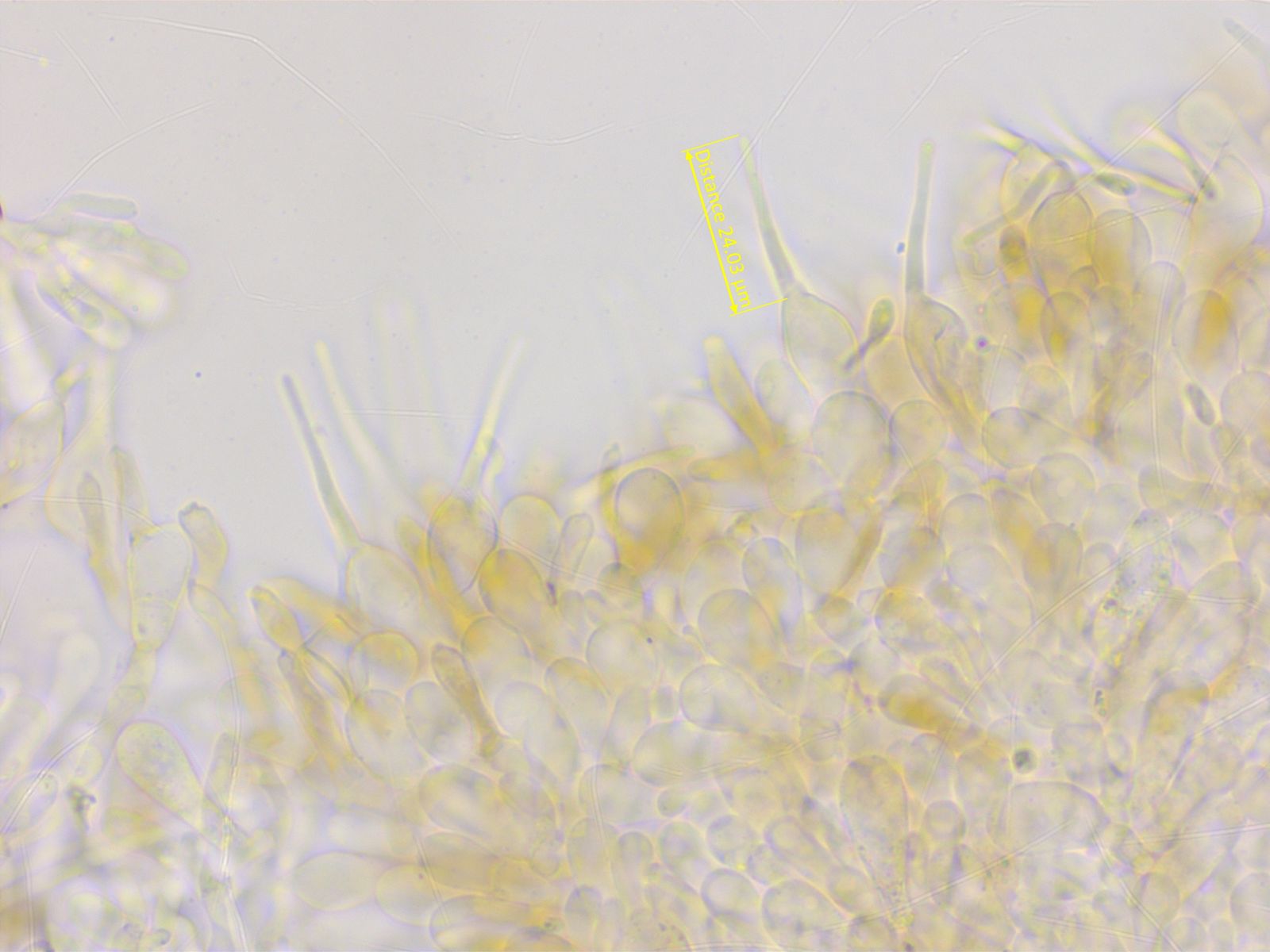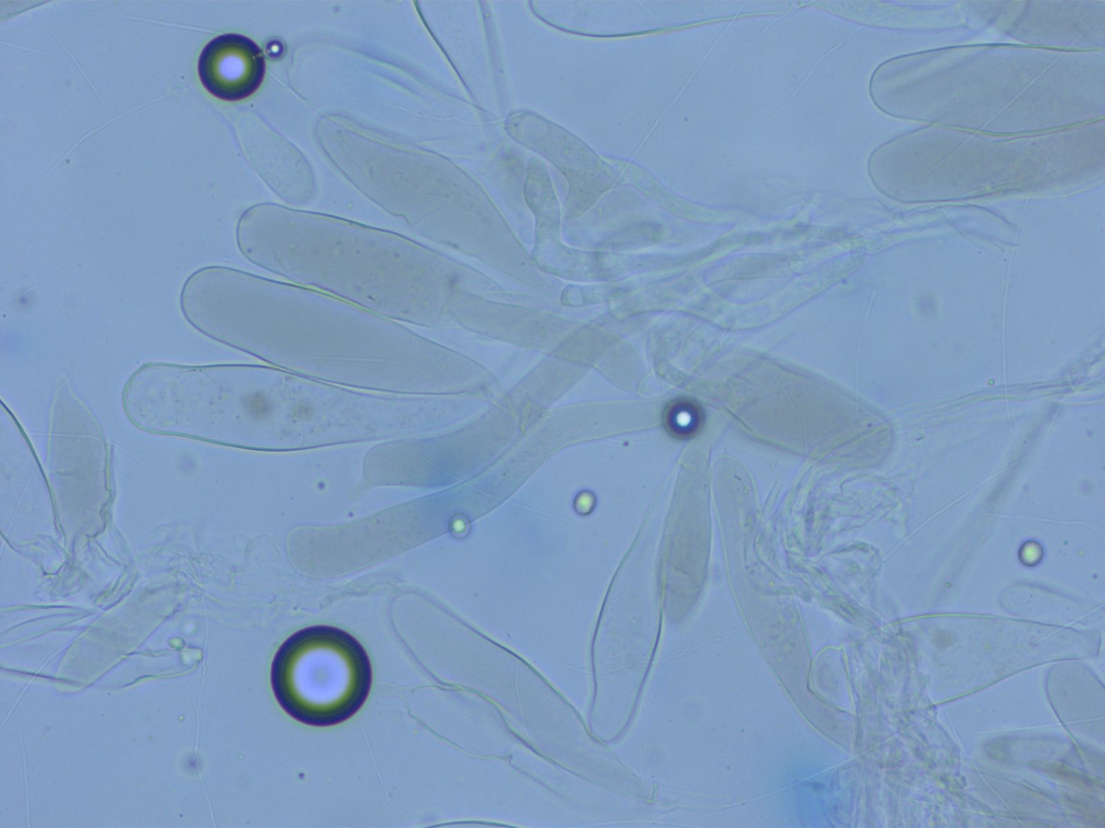 Zystiden nicht sehr zahlreich, zylindrisch, einige mit apikalem Fortsatz.