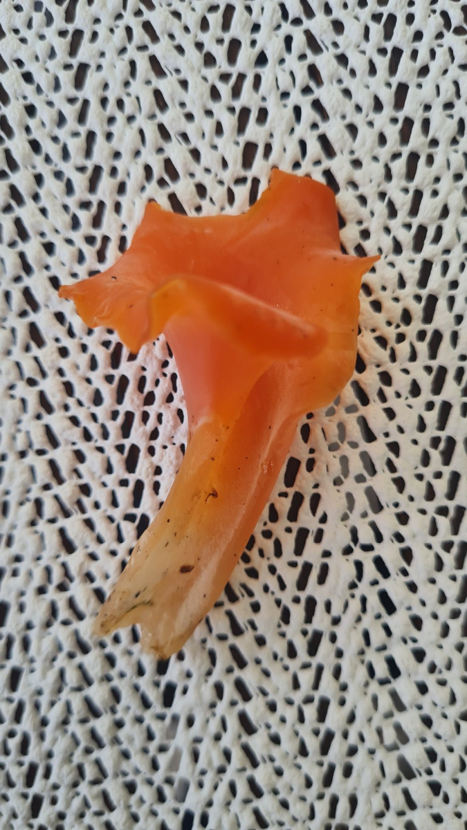 Nachdem ich heute eine große Menge rötlicher Gallerttrichter gefunden habe, habe ich einen mal zum Probieren mitgenommen. Man soll den ja roh essen können....