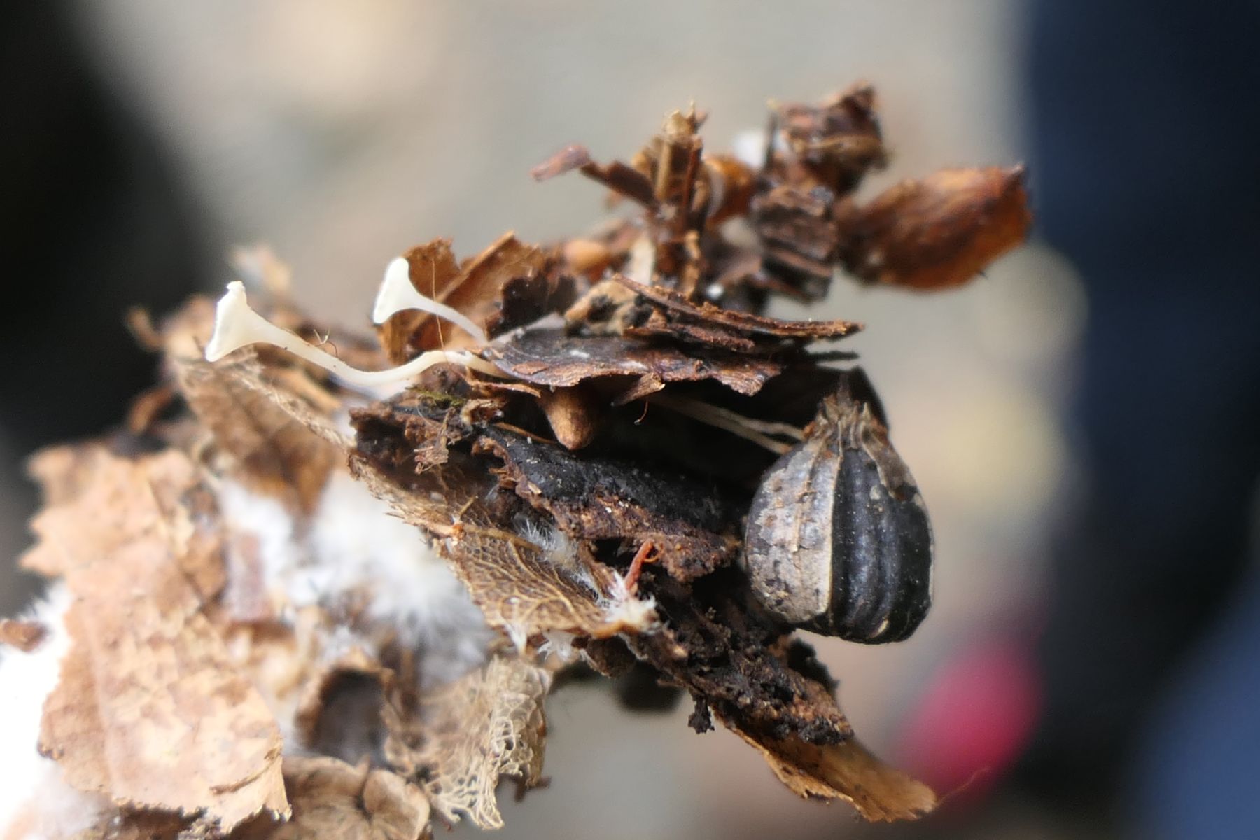 04 Hymenocyphus carpini - der Hainbuchenfruchtschalenbecherling (man beachte das Wachstum auf dem Samen)