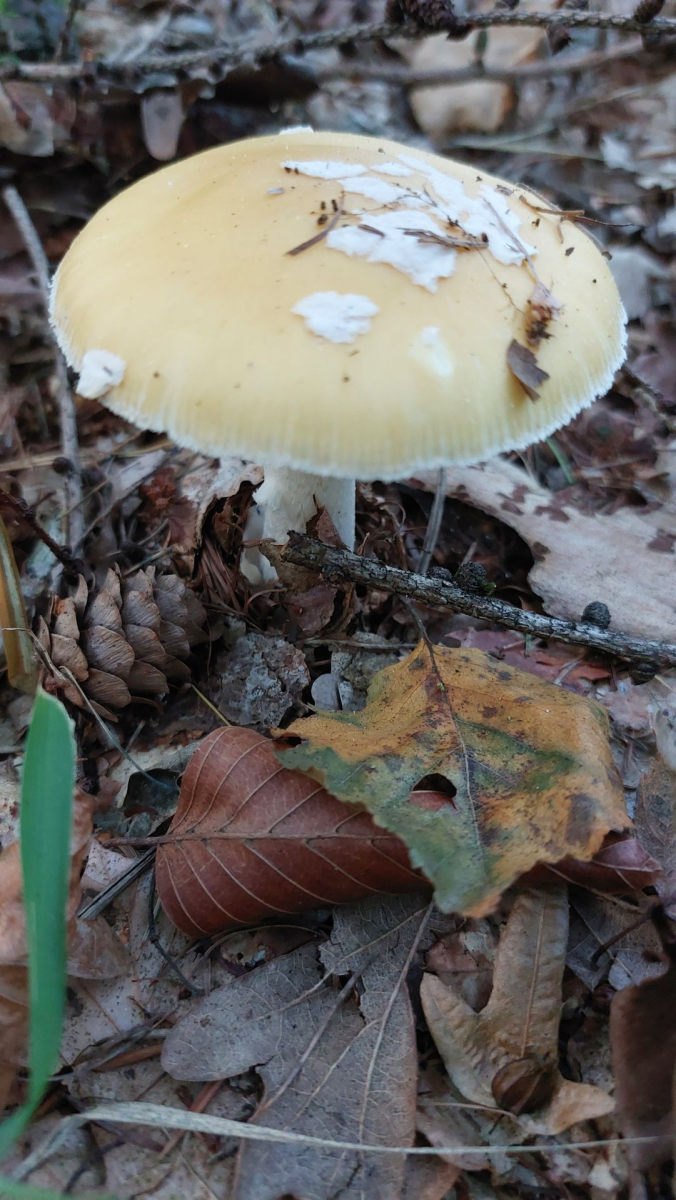 von Weitem dachte ich zunächst, da stünde eine gelbe Variation vom Fliegenpilz. Aber irgendwie passte es nicht so ganz. Kann das der narzissengelbe Wulstling sein?