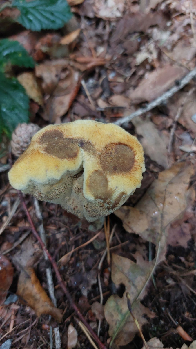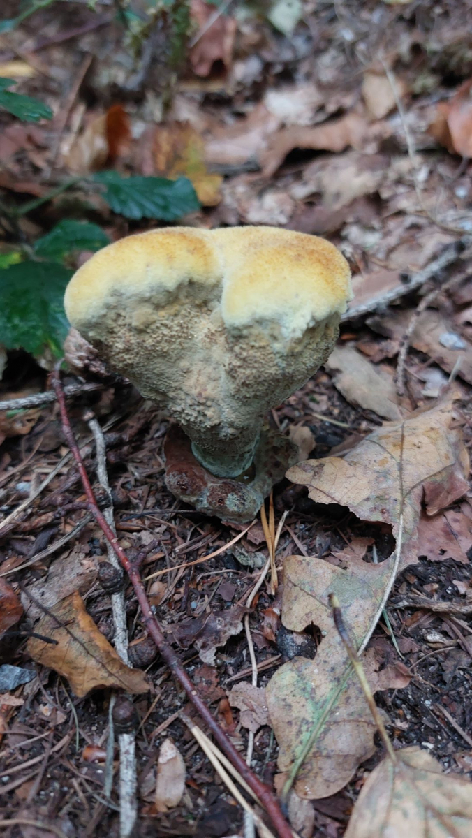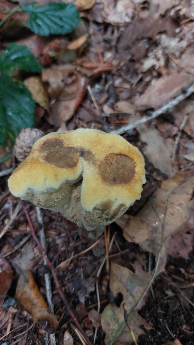 diesmal habe ich nicht einmal eine Vermutung, was das sein kann. Vorgestern neben einer Lärche (bei mir ist Mischwald, wo wirklich fast alles durcheinander steht, daher muss das nicht zwangsläufig immer 100% zum Baum passen, es könnte ja auch das Myzel vom nächsten Baum sein) gleich mehrere davon gesehen. Gestern wieder einen, auch wieder unmittelbar an einer Lärche, was zumindest die Vermutung nahe legt, er mag Lärchen.