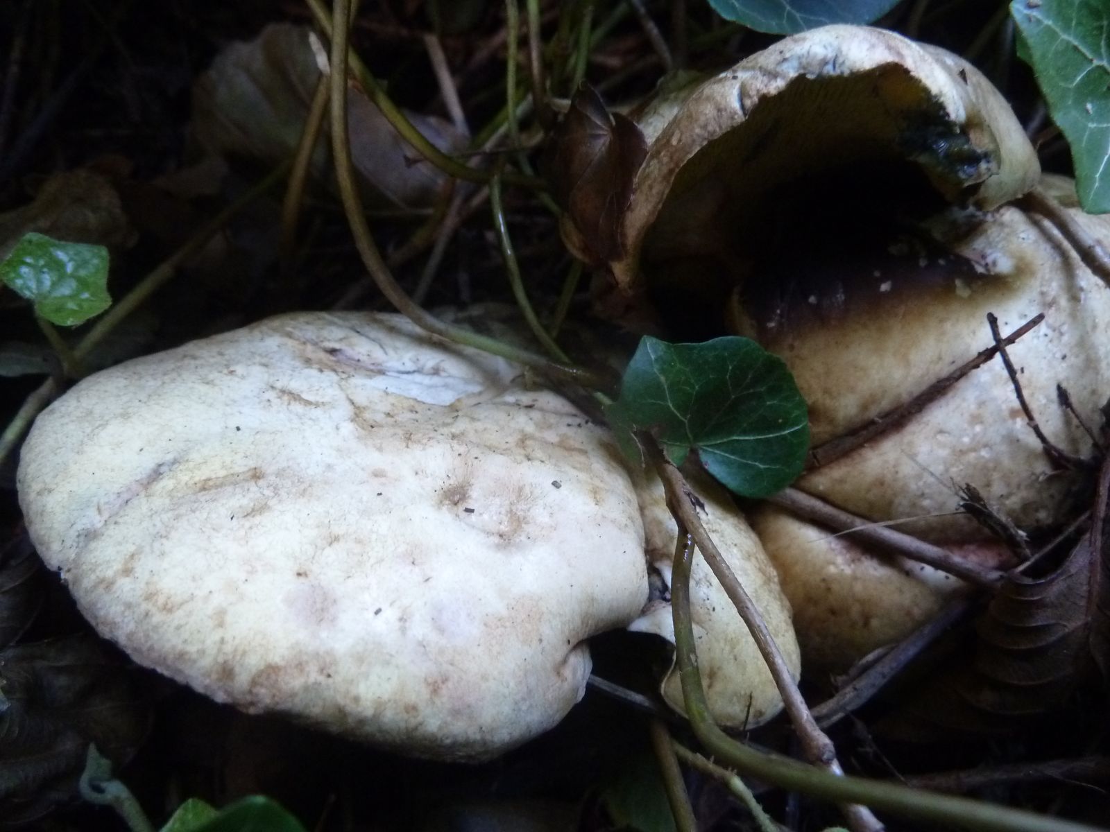Jetzt stellt sich die Frage, ob ich diesen Fund wenigstens als "Erlenkrempling" verbuchen kann. Mikroskop habe ich leider nicht, kann man Kahle Kremplinge und Erlenkremplinge (s.l.) mit Chemie unterscheiden? Die Fotos sind natürlich nicht optimal, aber es war schon früher Abend und regnerisch, das natürliche Licht hat nicht mehr ausgereicht und bis morgen wollte ich mit den Fotos nicht warten. Die letzten drei Fotos zeigen das jüngste gefundene Exemplar mit recht hellen Lamellen. Geruch unangenehm säuerlich, ähnlich Rotfußröhrling, aber stärker.