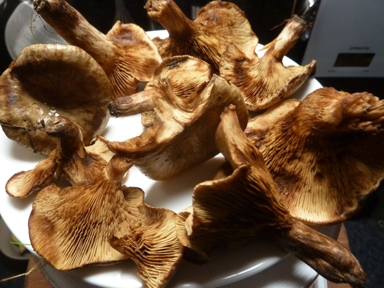 Nach längerer Suche konnte ich immerhin einige Kremplinge in etwa 8 - 10 Meter Entfernung von einer Erle finden. Ansonsten war da noch eine Sal-Weide, Walnuss und Rosskastanie. Von den Erlengrüblingen allerdings keine Spur ![]()