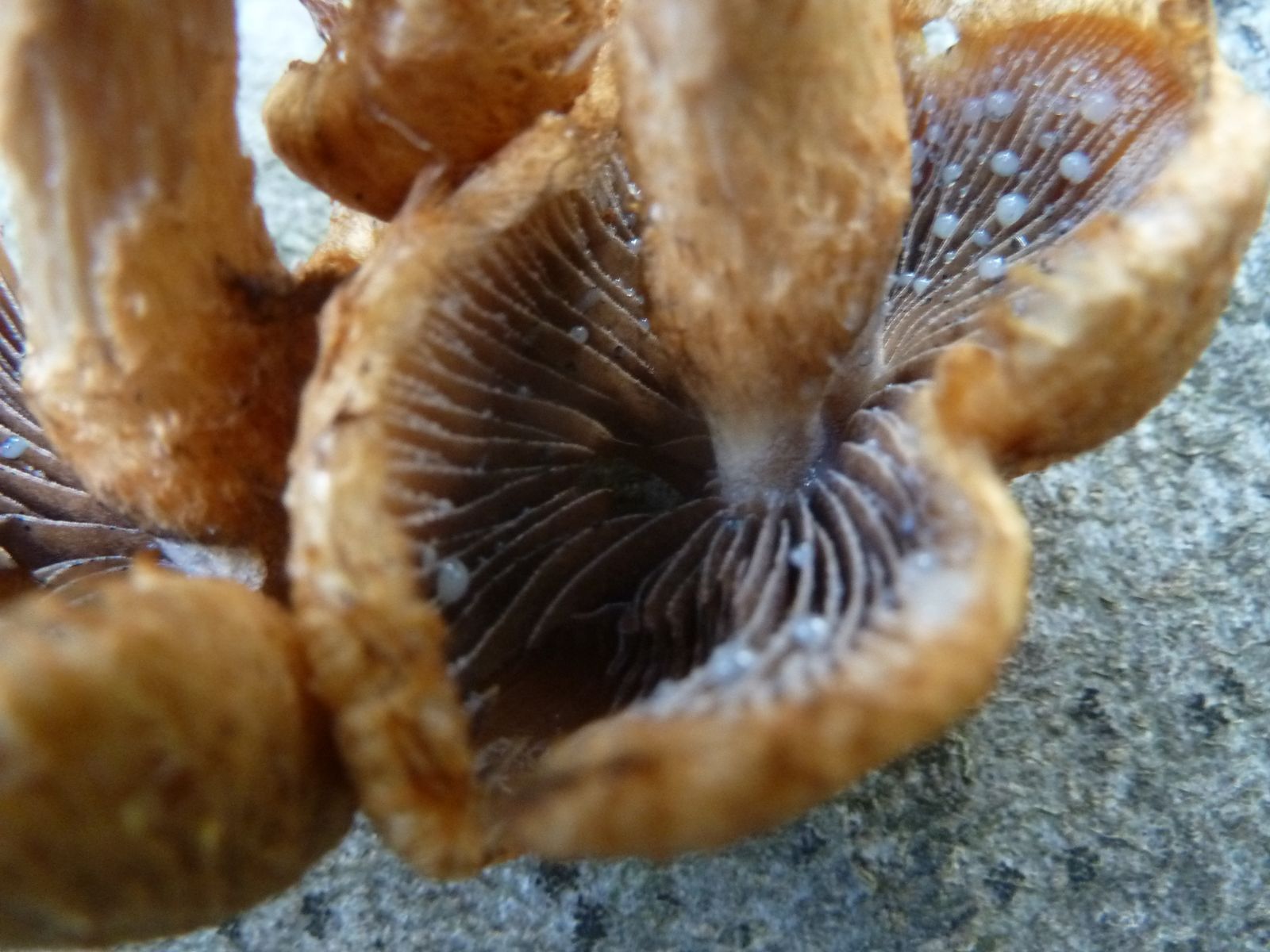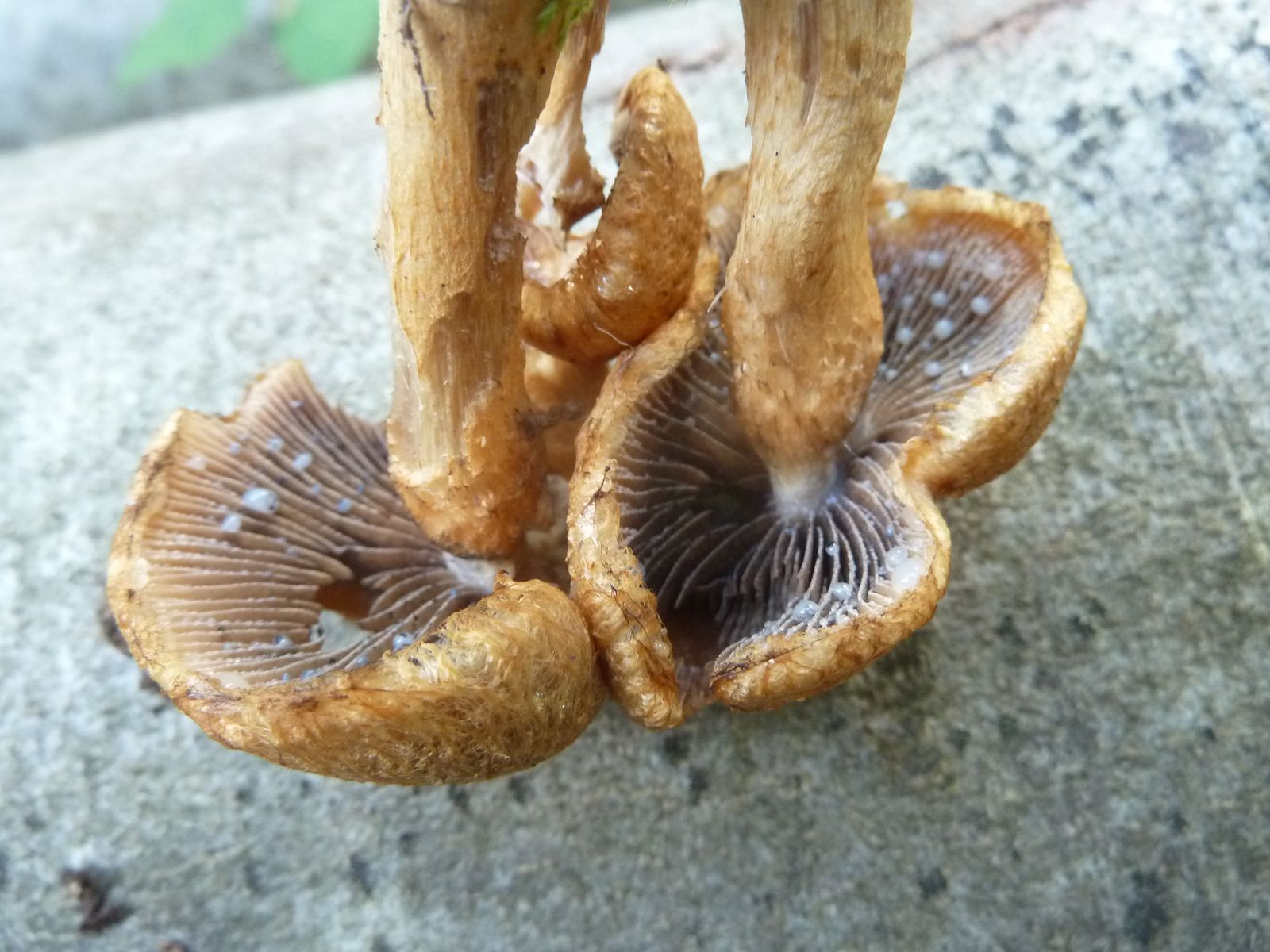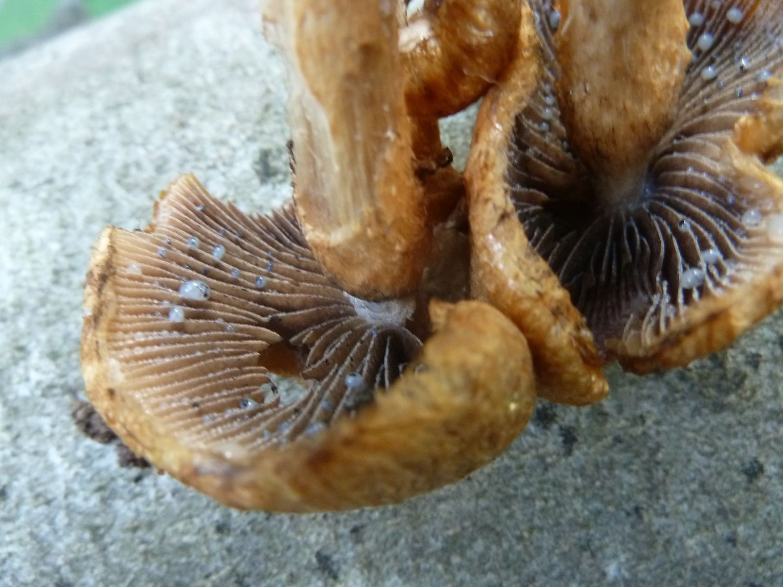 Dieses Büschel habe ich zum Schluss einer Sammeltour in die Hand gedrückt bekommen, leider ohne Dokumentation der Fundumstände. Erinnert mich irgendwie an den Tränenden Saumpilz, aber deutlich filziger und faseriger mit orangegelben Farben. Könnte das der "Feuerfarbige Saumpilz" sein? Ungewöhnlich sind auch die hellen Guttationstropfen, ich kenne die von L. lacrymabunda nur in ganz dunkel.