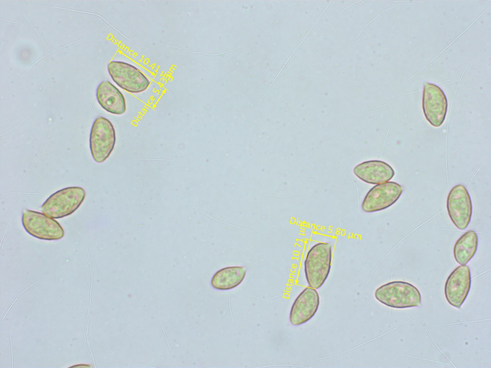 Die Sporen sind klein. Zwischen den drei Arten gibt es nur minimale Unterschiede, das hilft nicht weiter.