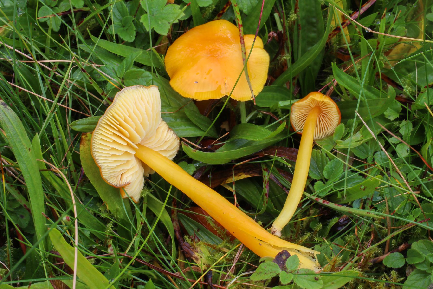8) Hygrocybe chlorophana - versteckt zwischen Tausenden von Hygrocybe ceracea (ein Foto dazu hat Hannes2 (Jörg) gepostet!)