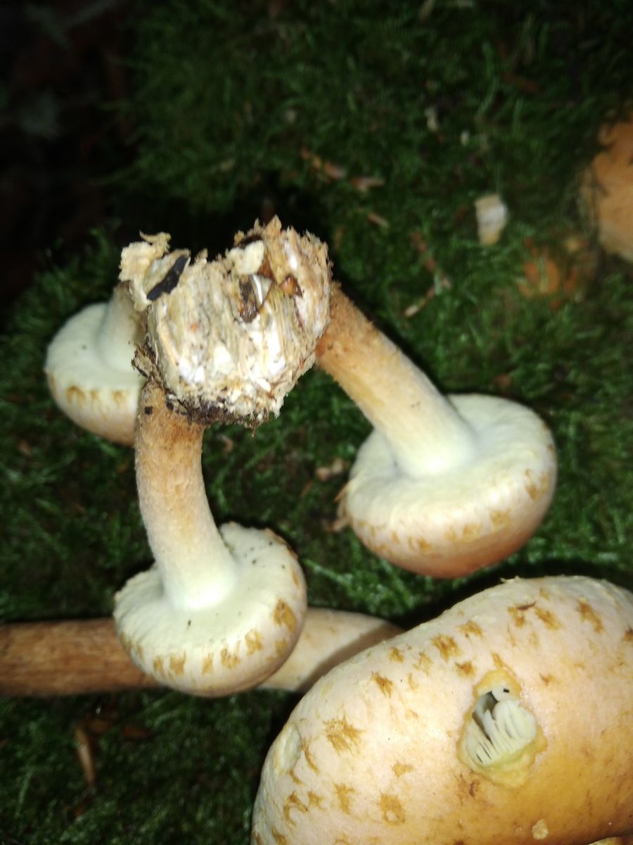 Handelt es sich hierbei um den relativ seltenen Ringlosen Hallimasch? Welcher allerdings laut 123pilze-2.de nur auf Laubholz wachsen würde.