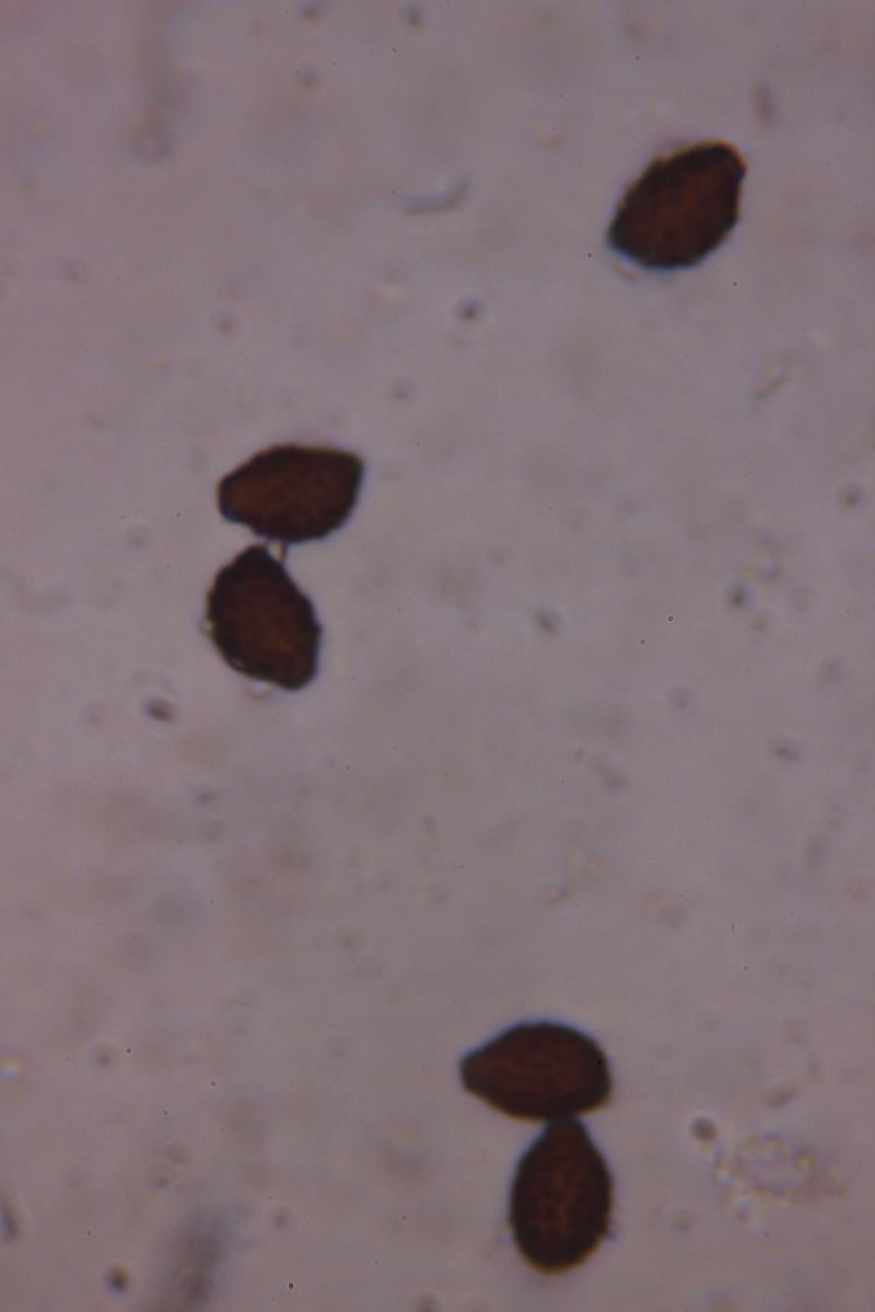 Sporen: warzig, dunkelbraun, Maße sollten laut Collins Fungi Guide passen (siehe nachfolgende Tabelle und Bilder)
