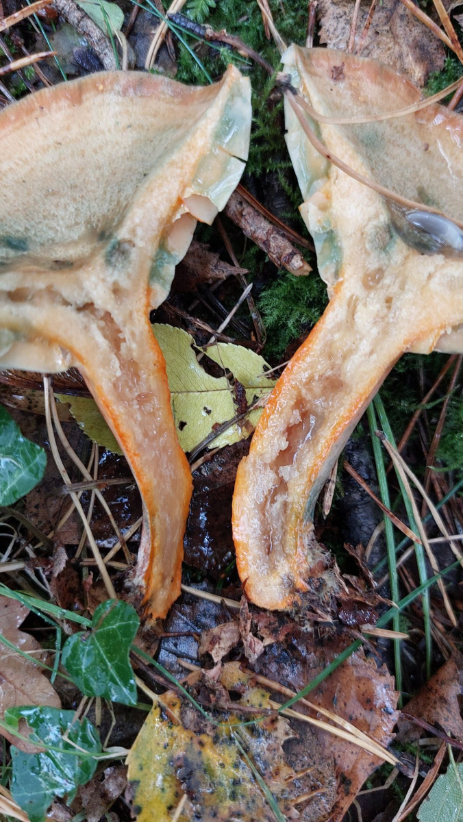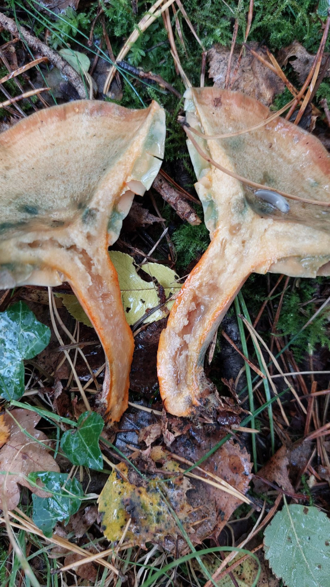 mit Reizkern habe ich mich noch nicht detailliert beschäftigt (einfach weil ich seit ich "mit dem Pilzvirus infiziert bin", noch keine gefunden hatte). Gestern dann diese hier gefunden, Lamellen angeschnitten und die farbige Milch erwartet, wie ich es durch Literatur und Videos gelernt hatte: Aber da kam nix.