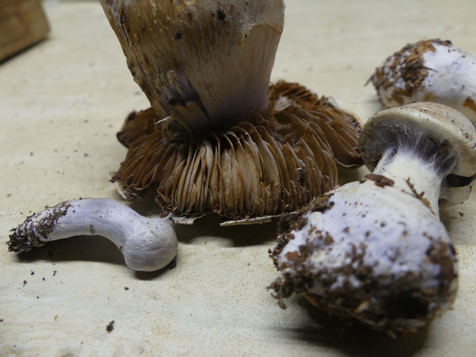 Also habe ich den und noch drei weitere Exemplare entnommen, sieben weitere Fruchtkörper stehen lassen (... die Hoffnung stirbt zuletzt).