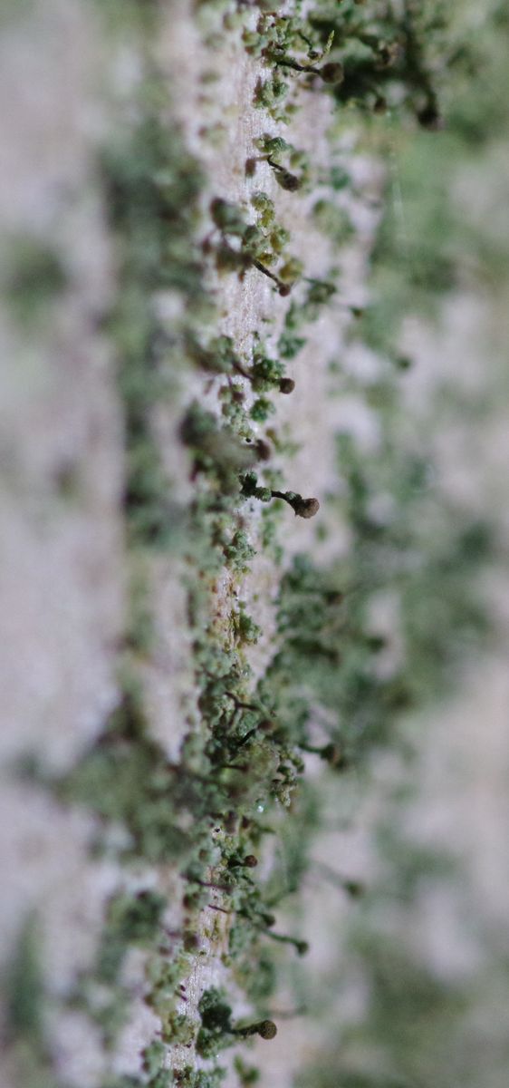 und dass die älteren Exemplare (oder was ich dafür halte) am Apothecium ein neues Lager bilden und von da aus neue Nägel wachsen. Sowas ist ja von einigen Cladonien bekannt, aber von Chaenotheca habe ich derartiges noch auf keinem Foto gesehen.
