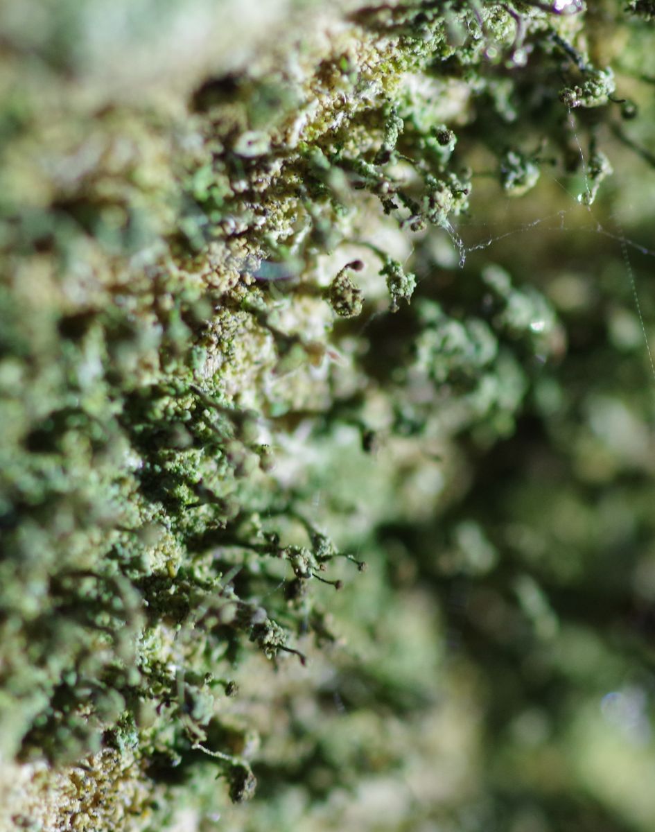 an einer Fichte, die auf der wind- und lichtabgewandten Seite eine alte Verletzung hat, wächst in Augenhöhe auf dem Totholz seit Jahren eine der "Nagelflechten". Leider grenzwertig für mein Makro. Auf den gestrigen Fotos ist aber mehr zu erkennen, als mir bisher bekannt war.