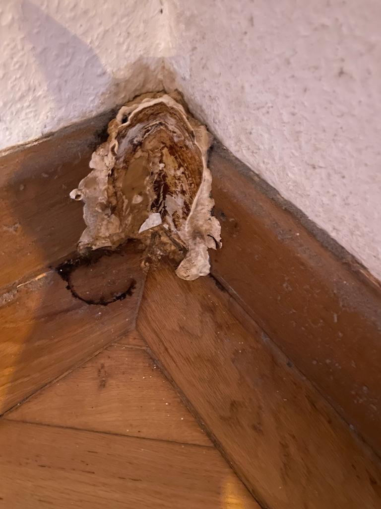 wir sind hinter Couch auf einen Pilz an der Fussleiste aufmerksam geworden und würden gerne besser einschätzen können, ob dieser Gefährlich ist.