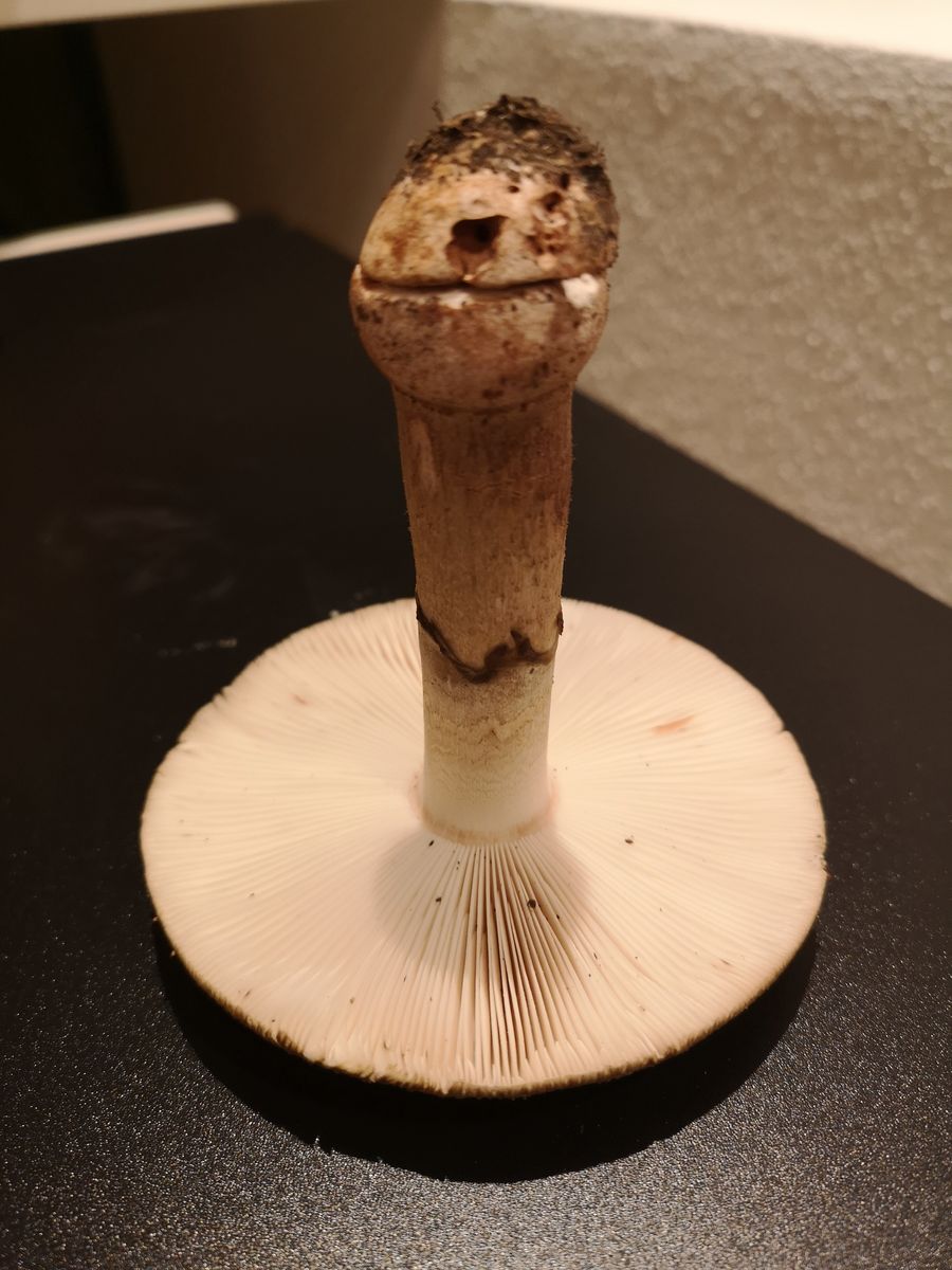 du hast sicher den Stiel von allen Seiten ausgiebig befingert und so die Manschette zerdrückt. Die wäre ohne deine grobe Behandlung beim Perlpilz nämlich gerieft und ein weiteres Bestimmungsmerkmal.