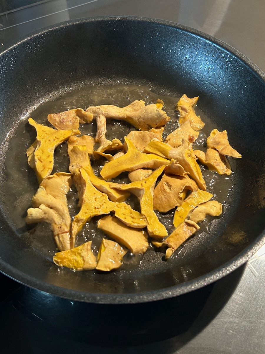 Wie jedes Jahr ging ich letzte Woche wieder in Laax GR CH in den Bergwäldern auf Pilzsuche und habe einen für mich interessanten neuen Pilz für meine Sammlung entdeckt . Erstmals habe ich eine Gruppe von Schafsporlingen Albatrellus ovinus im Laaxer Bergwald auf 1100m ü.m. entdeckt. Diese Pilze sind offenbar in Deutschland geschützt und man darf sie dort nicht sammeln, nur noch in den Bergen sind sie häufiger anzutreffen. In Laax habe ich sie zuvor aber auch noch nie gesehen. Auch die Bergwälder in der Schweiz sind recht trocken und ich fand deutlich weniger Pilze als in anderen Jahren. Interessant ist auch, dass sich diese weissen Pilze beim Kochen gelb verfärben, das habe ich ausprobiert und tatsächlich wurden die weissen Pilzstücke allmählich gelb! Die Pilze sind essbar, riechen frisch etwas pilzig und nach dem Kochen noch recht fest aber im Geschmack nicht besonders!