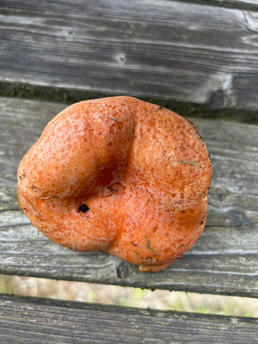 Wo du geschrieben hast Lachsreizker. Das scheint mir aber ein Fichtenreizker zu sein. Denn er weißt keine Grübchen auf.