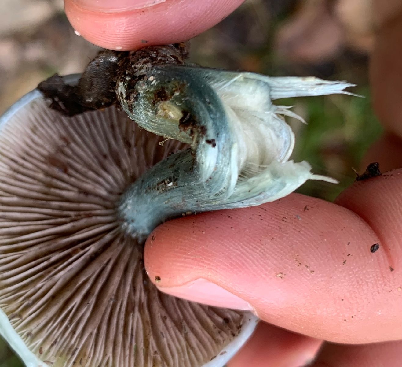 eben im Binger Wald folgendes Exemplar gefunden. Ich tippe auf den blauen Träuschling - kann das jemand bestätigen?