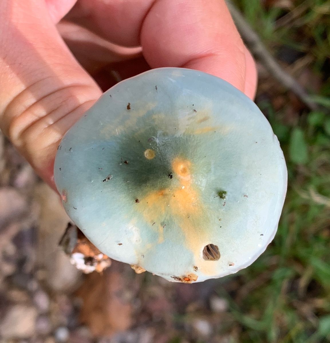 Ich schließe mal aus dem Verlauf des Fadens, dass aus den Bildern eine zuverlässige Identifikation nicht möglich ist. Wobei ich noch mal auf die nicht vorhandenen Velumreste und keinen erkennbaren Ring hinweisen möchte, was beides für den Blauen sprechen würde.