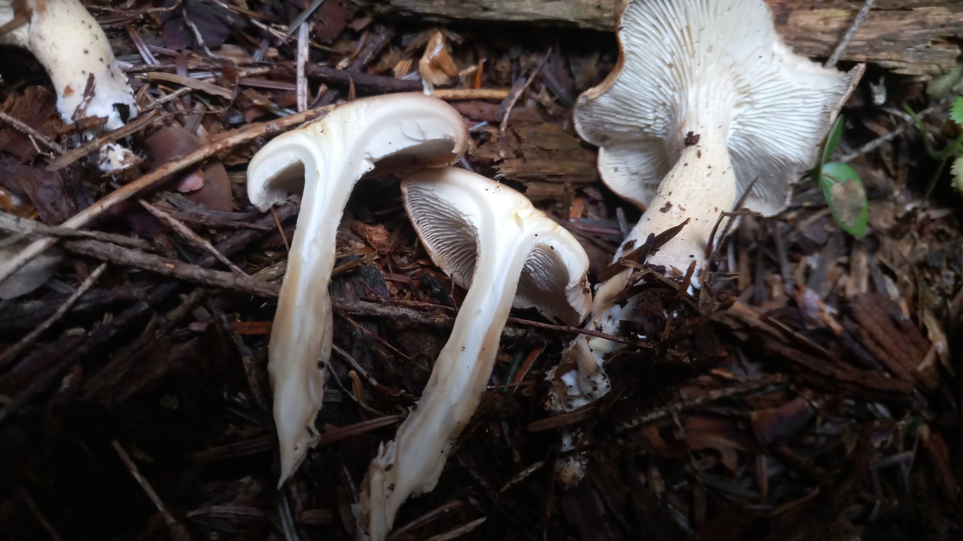 - Lamellen weisslich mit Zwischenlamellen, herablaufend, etwas rilligen Stiel bildend im obersten Teil